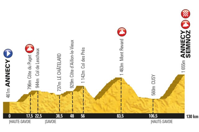 2. Notice the similarity in names at the left and right of the profile graph above. This Etape will be a loop, more or less – starting in the lovey lakeside town of Annecy and finishing uphill at the ski station of Annecy Semnoz. Another fine move by the organizers, reducing the chaos and stress of the crazy logistics the old A-B routes used to have.