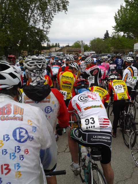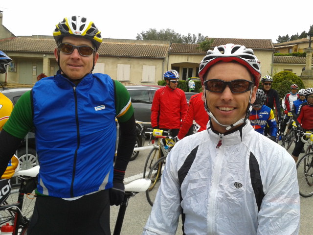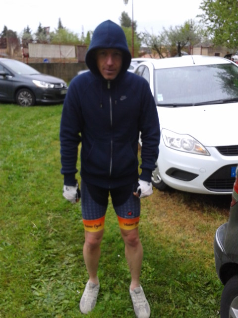 A perfect day for a bike race you say? You are insane (or Irish) if you do, but I suppose we are even worse, since we did it. Le Petit Bruno is a local sportive that John and Erik did, in similar conditions, last year. Here is the happy bunch (things would quickly take a dark turn) at the back of the start gate, as usual.