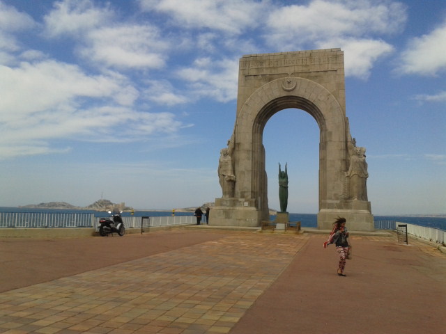 A monument to French soldiers killed in North Africa during WWI, I think. The monument to dead North Africans must be nearby…I guess I missed it. Notice the wind-blown girl. It was howling today.