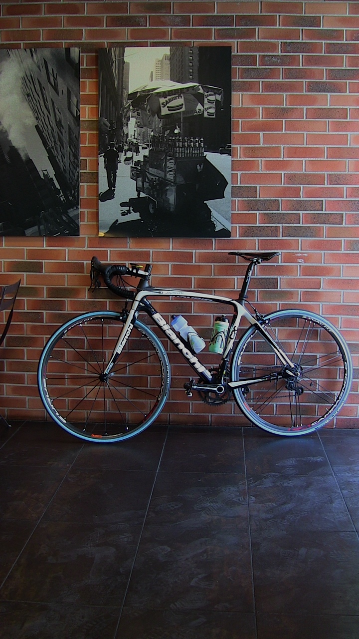 We tend to go ‘exotic’ with food when we hit the big city and today was no exception. Oscar’s Bagels and Sandwiches serves up some very decent bagel sandwiches, has coffee in cups big enough to wrap more than a finger and thumb around, AND they let you keep your bike inside while you eat!