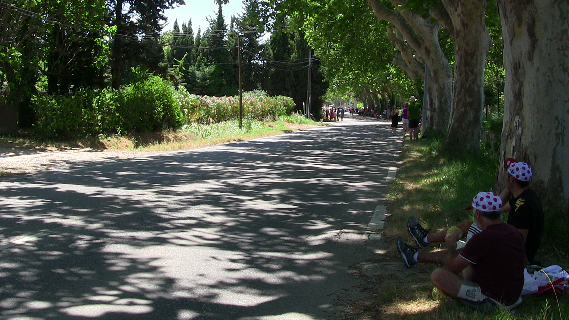 And Shoko took some video. I’ve kept it its full length because I thought the extended version showing the train of vehicles behind gave a glimpse of the logistical immensity of this race. These cars, vans and motorbikes were preceded, by the way, by 2 hours of the same, with the publicity caravan to boot. It’s a pretty impressive sight to see from beginning to end. Just get there early to secure your plane tree.