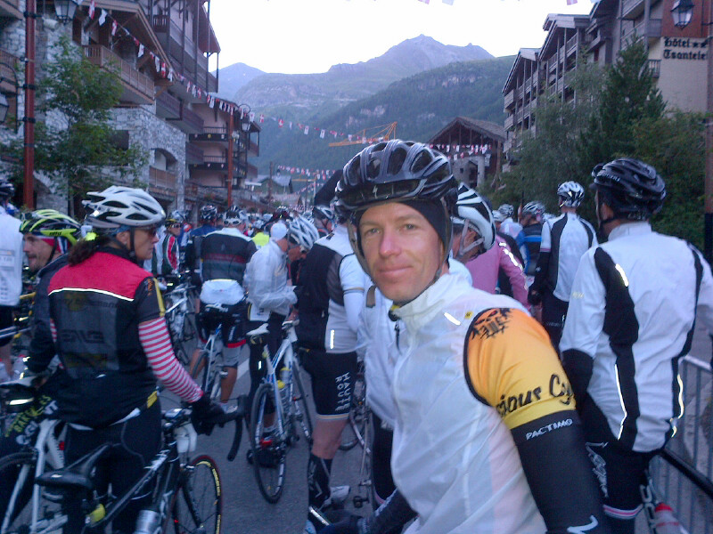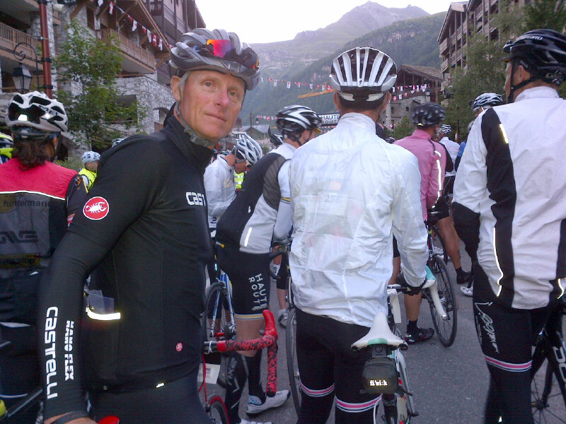 Today, the ‘Marathon Stage’, was freaking everyone out all night, I’m sure. It wasn’t really the distance or the elevation gain that was bothering, but the forecast for near-zero on the top of the first climb, plus a 5C start. Rob set me up with some embrocation stuff and toe covers that certainly did the trick on the Col d’Iseran and its viciously cold descent. However, once the sun came out my legs felt like someone was sandpapering them, they were so hot.