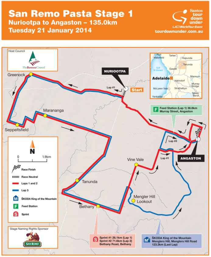 As I was searching on their site, I was hit by the unique commercialization of this particular race (for one, it’s official name is the ‘Santos’ Tour Down Under), which I guess means it’s working. Apart from the San Remo Pasta one below, there are the following branded stages: