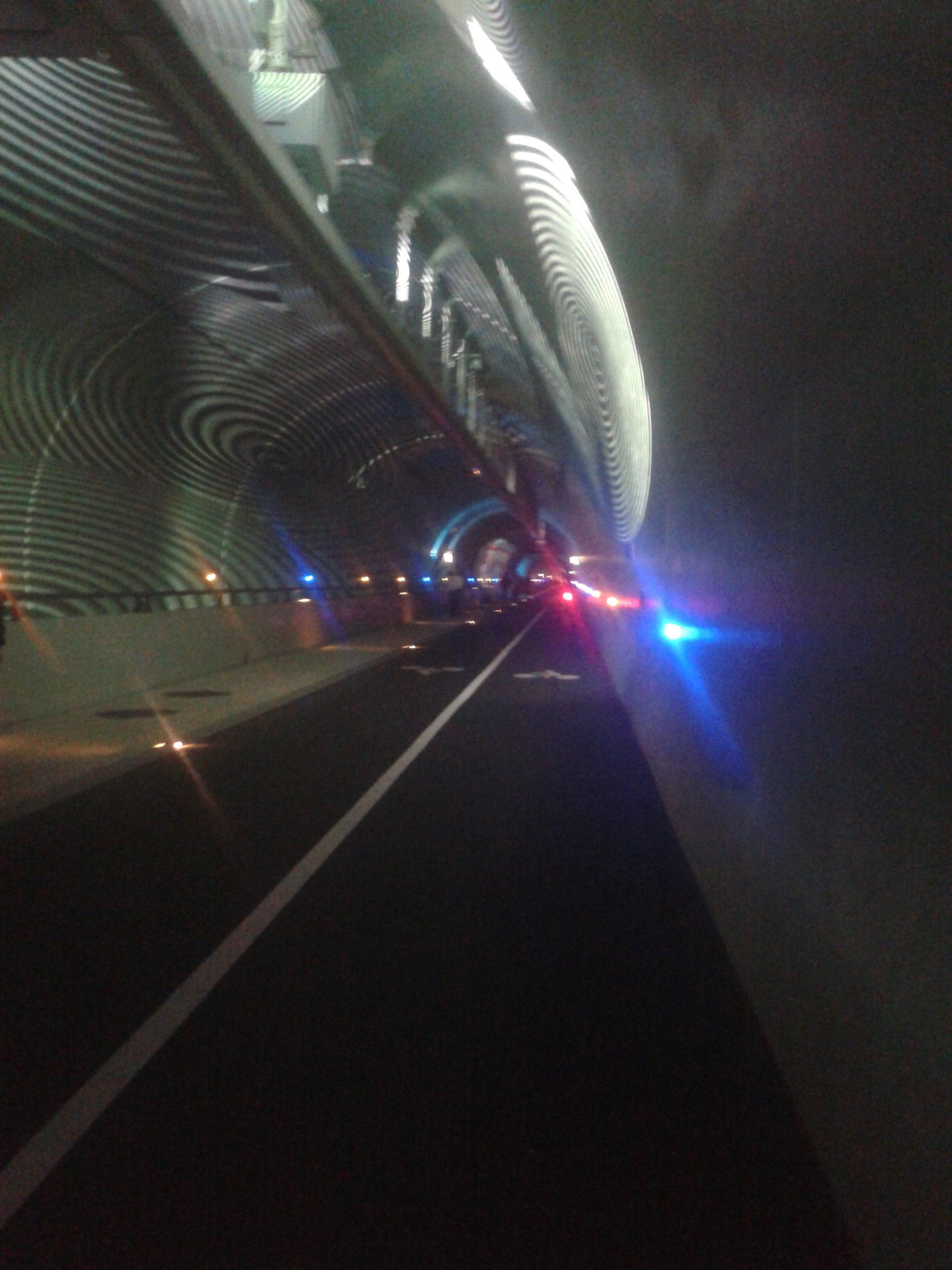 Le Tube is nearly 2 kilometers long and has two lanes for bikes, a wide path for pedestrians right next to it, plus a lane for buses (we only saw one of those, thankfully). For the claustrophobic among you, emergency exits are placed every 75 meters.