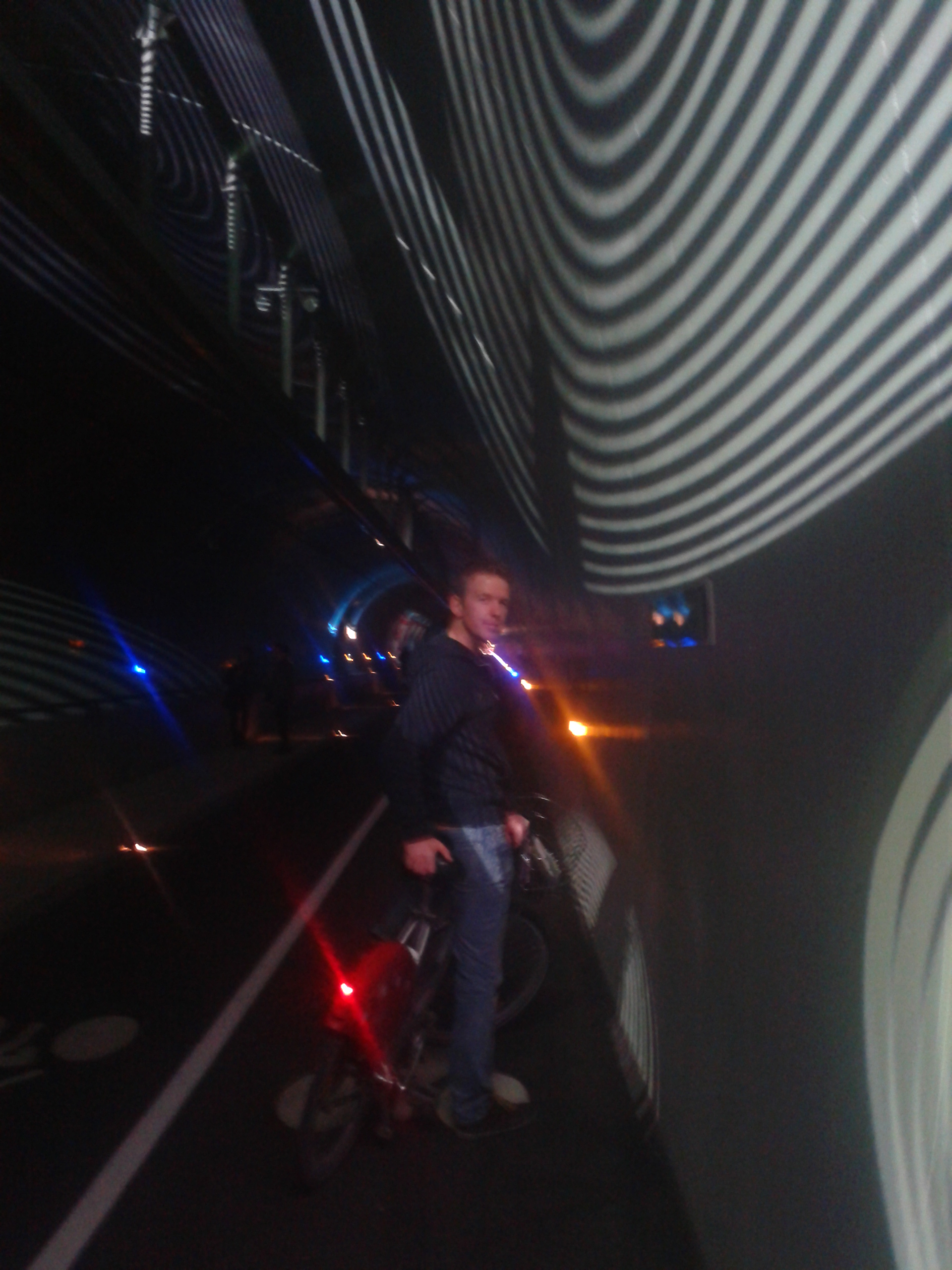 Once you ride inside Le Tube you are treated to a long series of lights and animation, layered with soothing tunes that make you want to roll along slowly. Not the place for Lactic Threshold intervals, I’d suggest.