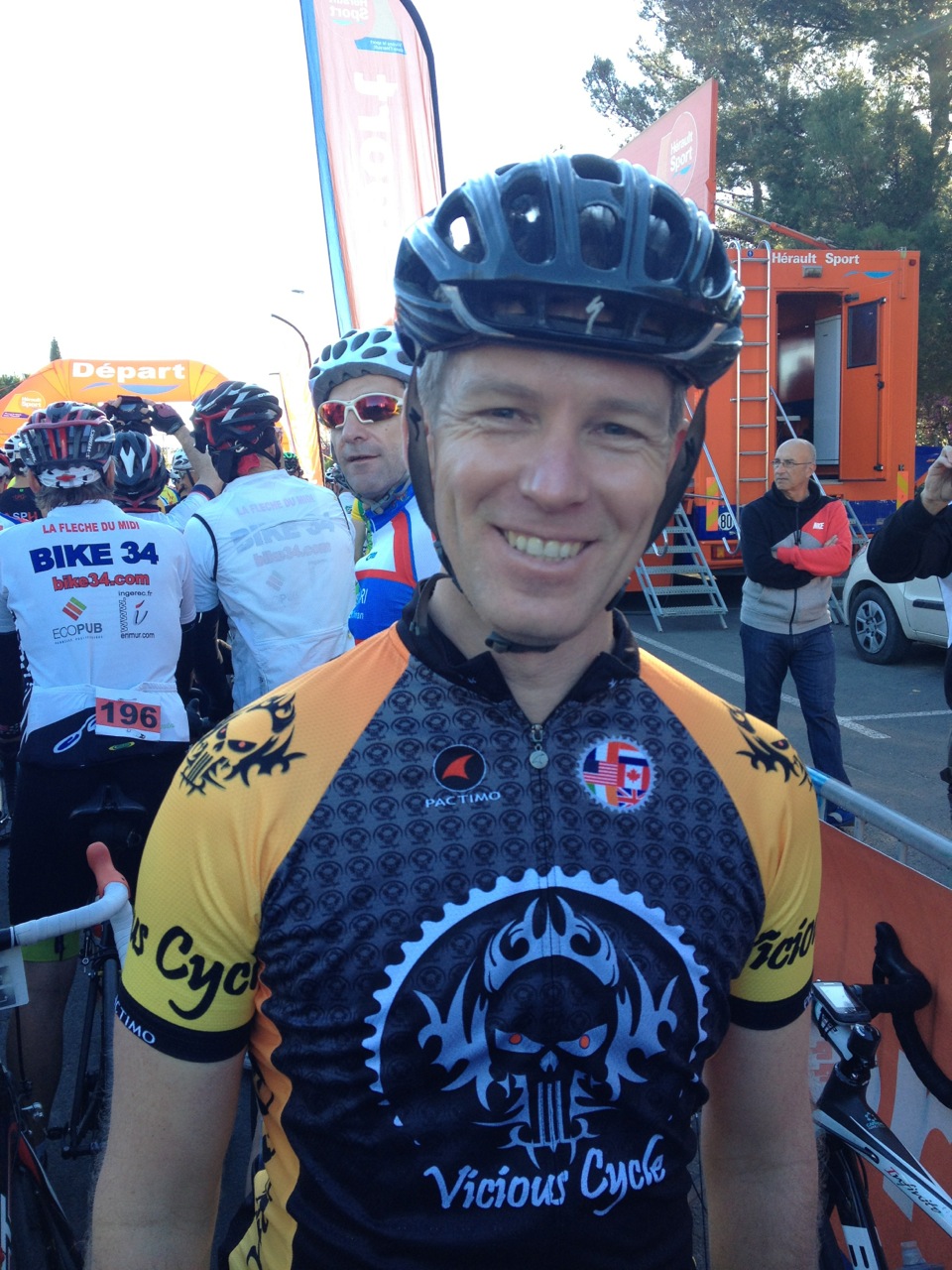 Today saw just about every expat cyclist I know down here take part in the ‘Roger Pingeon – Heraultaise’, a well-established sportive named after an ex-pro French rider who, presumably, was there today. I was too busy remembering how to pin my bib on my jersey to be bothered, I’m afraid. I didn’t do a very good job of photo taking today, either, mainly because of the world of hurt I was in afterwards. Here are a few from John’s camera to save the day.
