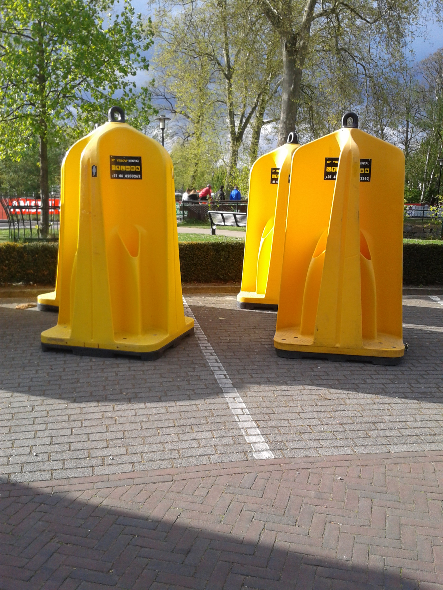 The organizers were prepared for the inevitable with these minimalist beauties scattered at strategic points throughout the event. Painted yellow, like the Golden Arches, they make you want to go.