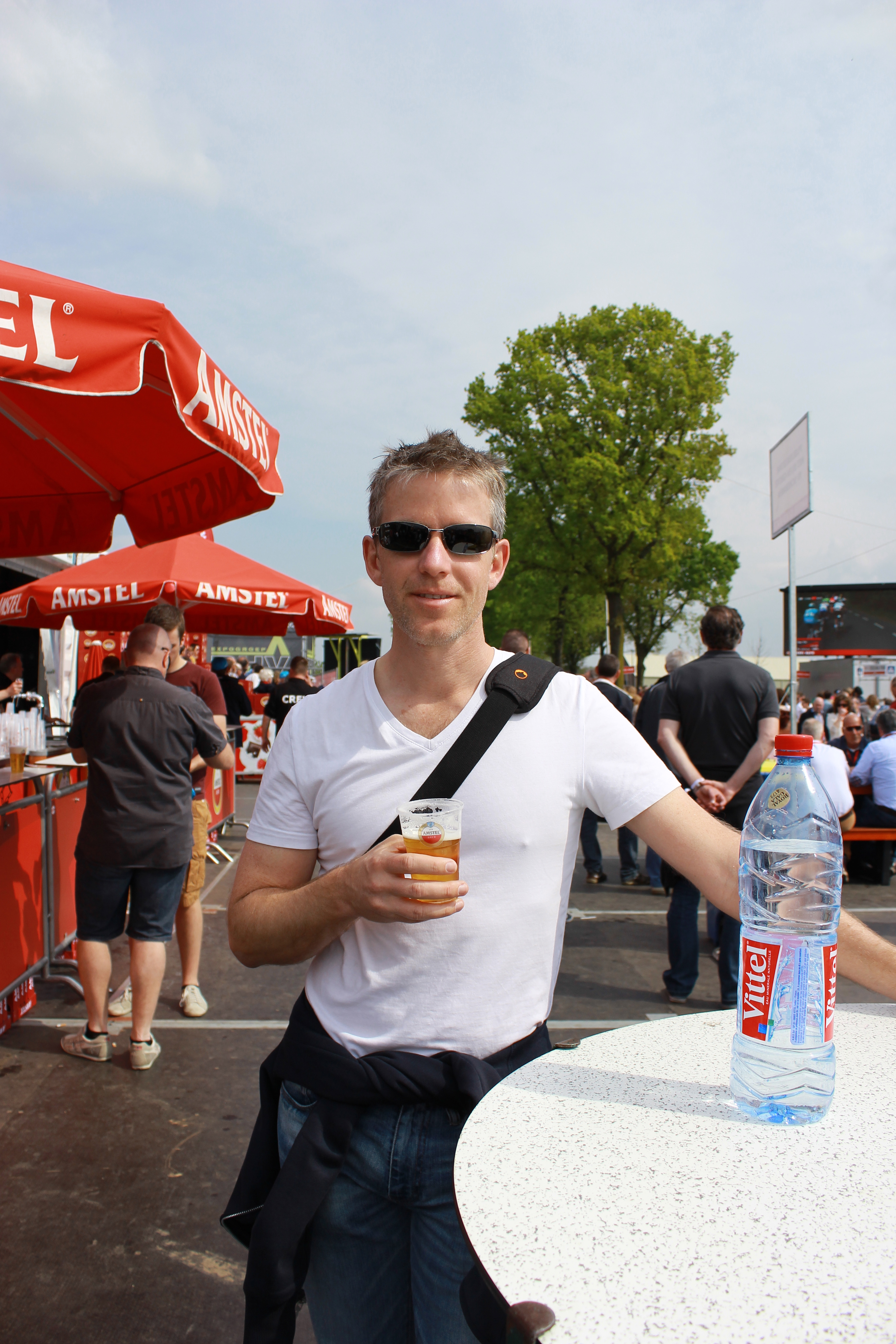 Then drank it. I don’t know where I got that helmet-head from. Maybe it’s a permanent feature now. The location we chose was right at the finish line and we had that big screen in the background to watch the last 75 km of the race.