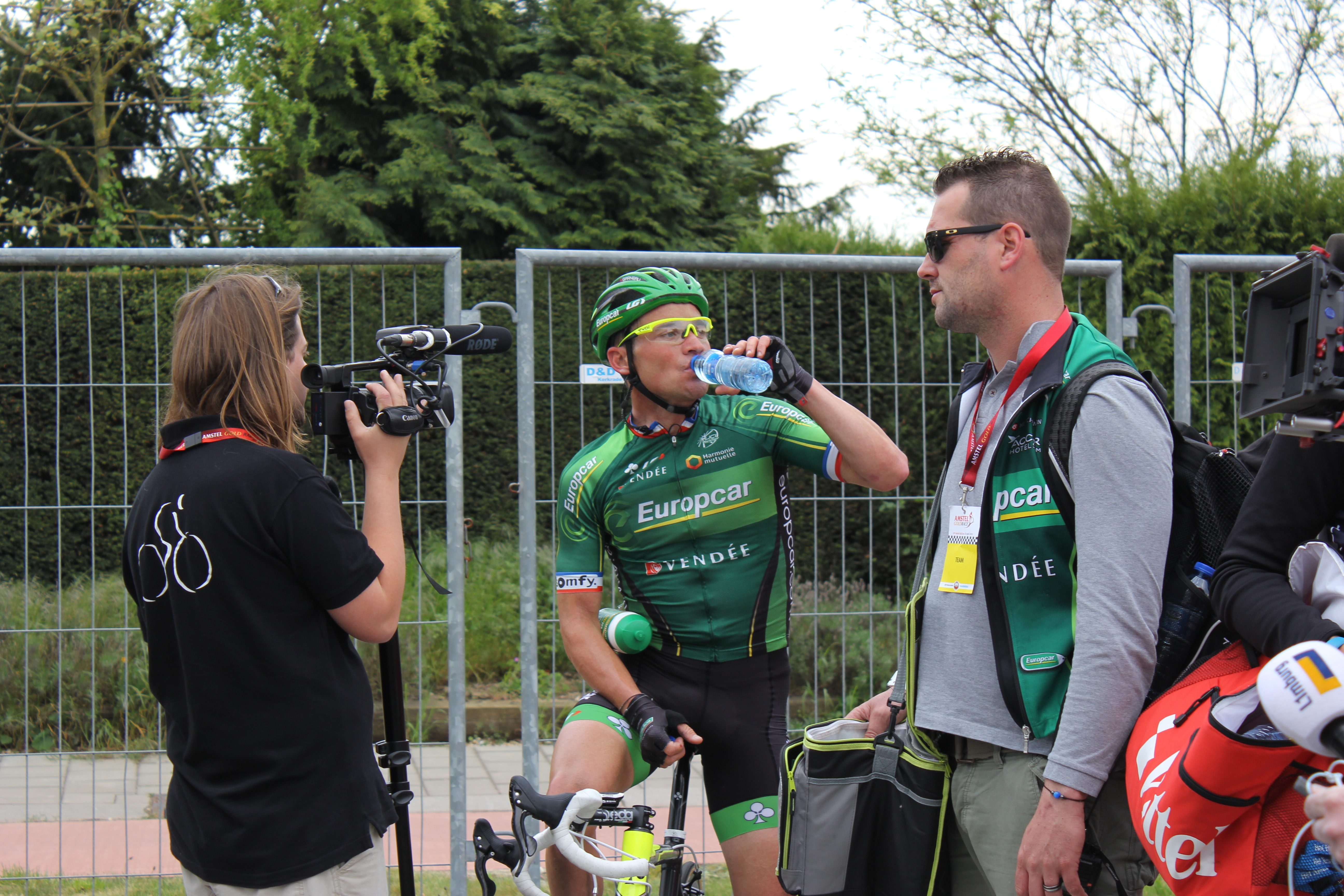 After the race was done we walked by all the buses on the way to the car, passing by a lonely Tommy again, this time being interviewed by a sole French journalist.