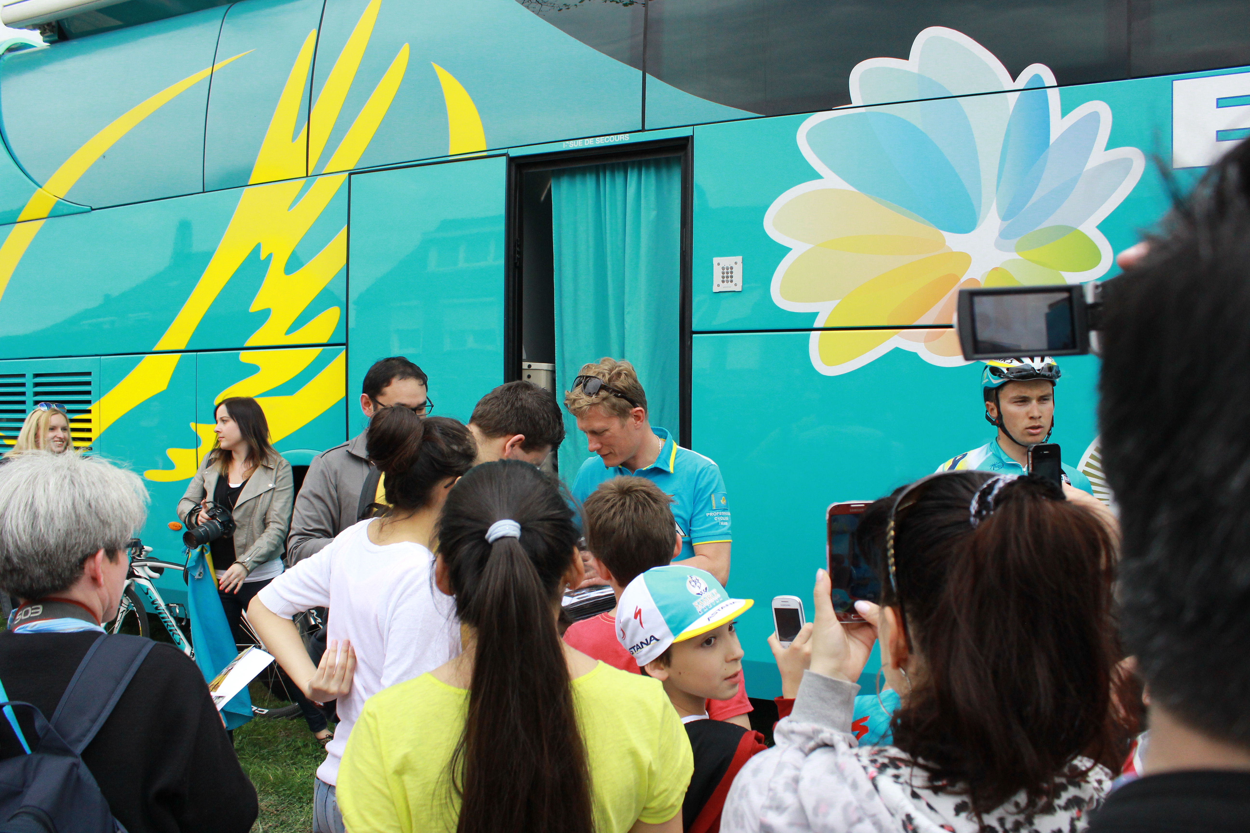 Near the end of our walk we passed by the Astana bus: possibly the only team that has a GM who is more popular than his riders.