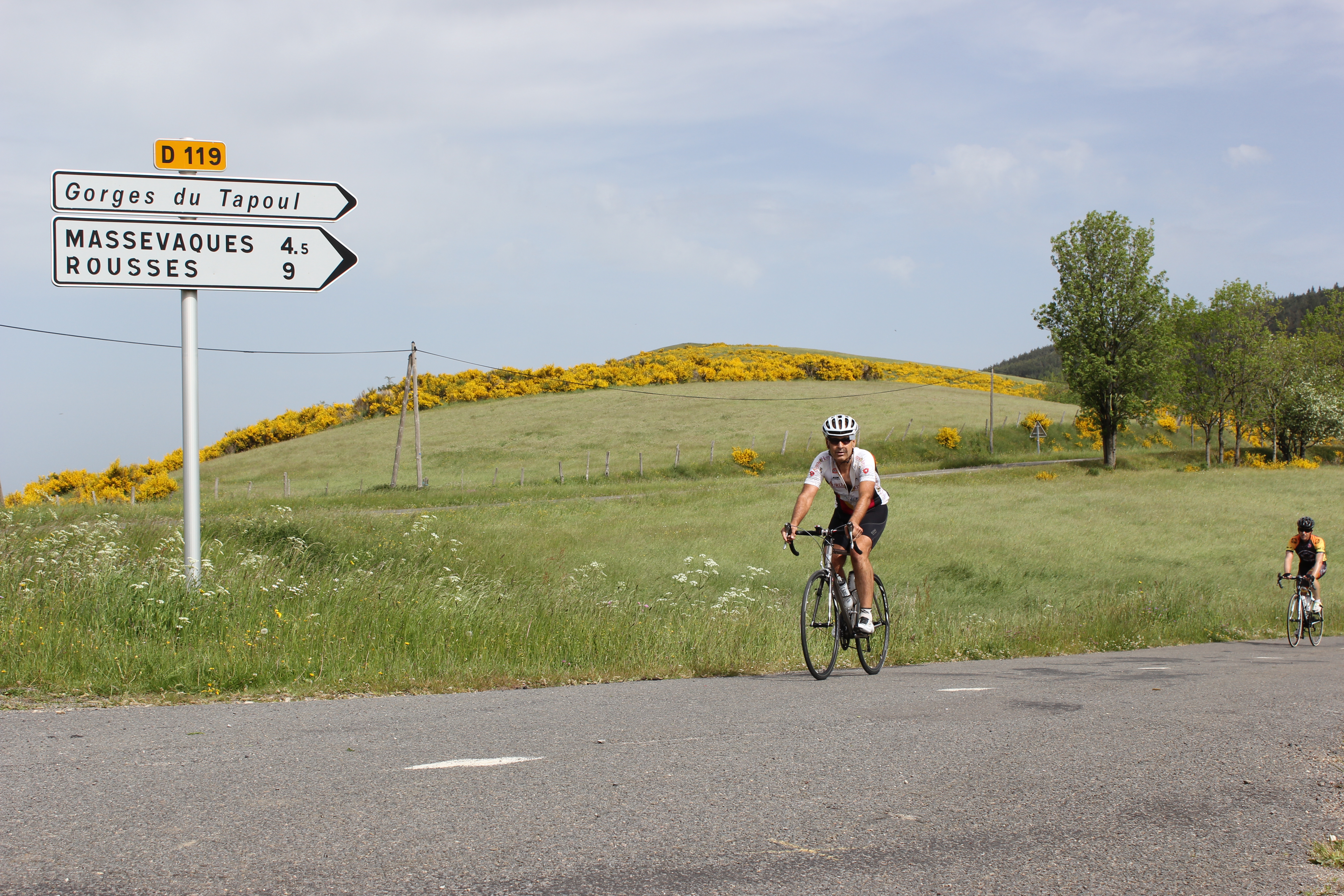 Great pics Gerry. The yellow on Mont Aigoual looks like gorse. If you squish the leaves they have a nice vanilla fragrance. Did my first cyclosportive since HR, Trois Ballons. Did the shorter version 112km and 2100m but ouch on the 17-18% portions. There were a lot of Belge and Dutch. Hmmmm! Don’t they know when they all stand at the top of those high climbs blocking the road while they congratulate each for making it to the top that it makes it impossible for everyone else to actually crest the top!