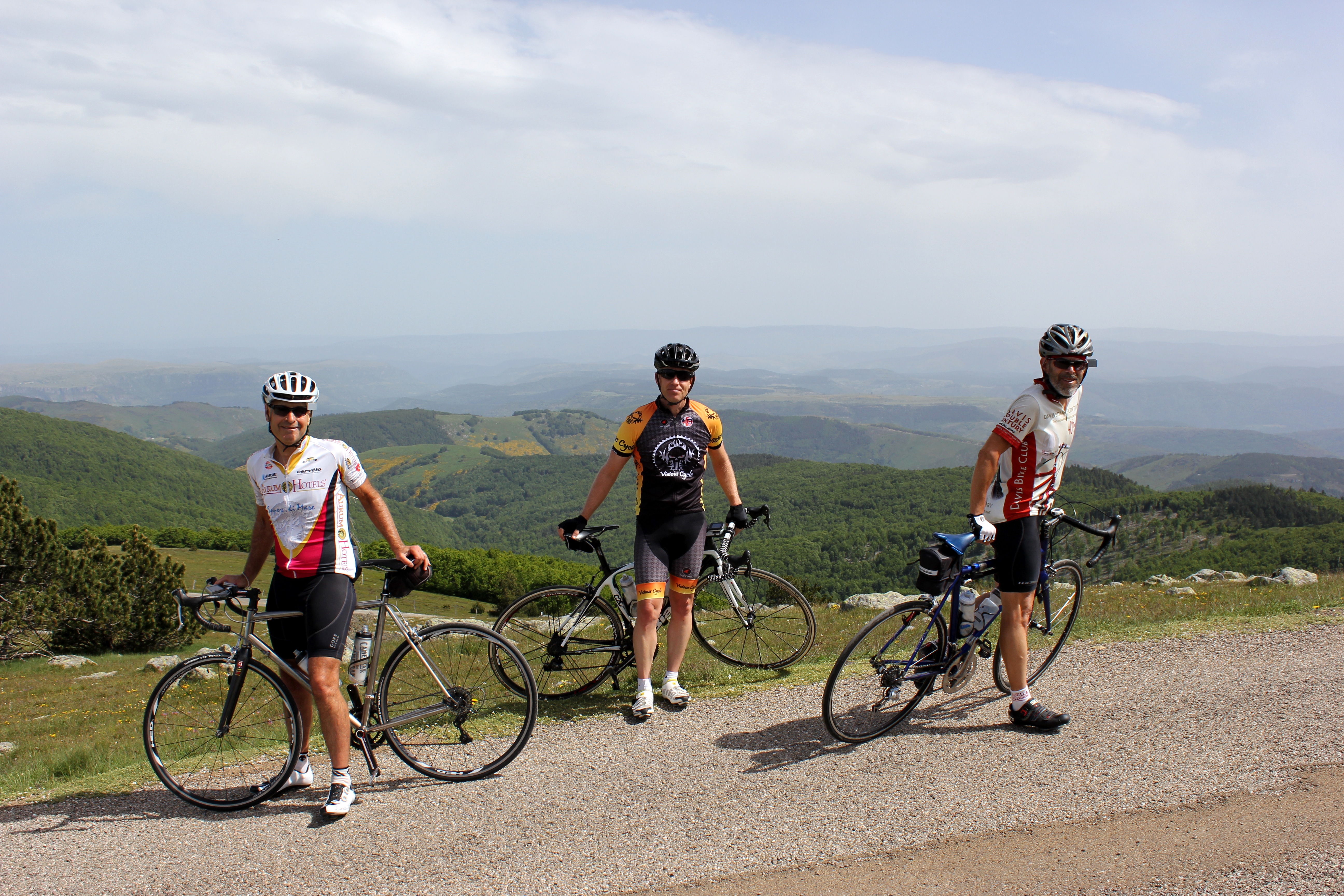 Our inaugural High Road Cévennes was a great success, I’m happy to report. The beautiful sunny weather helped a bit, as did the incredible routes we carefully hand picked. It also didn’t hurt that we had cycling-tour vets for clients who knew more about how these things worked than we did – for the time being. Here is a little scrolling slideshow of the trip, missing, now that I see it, photos of the steady stream of delicious meals our hotels and restaurants whipped up for us each and every day.