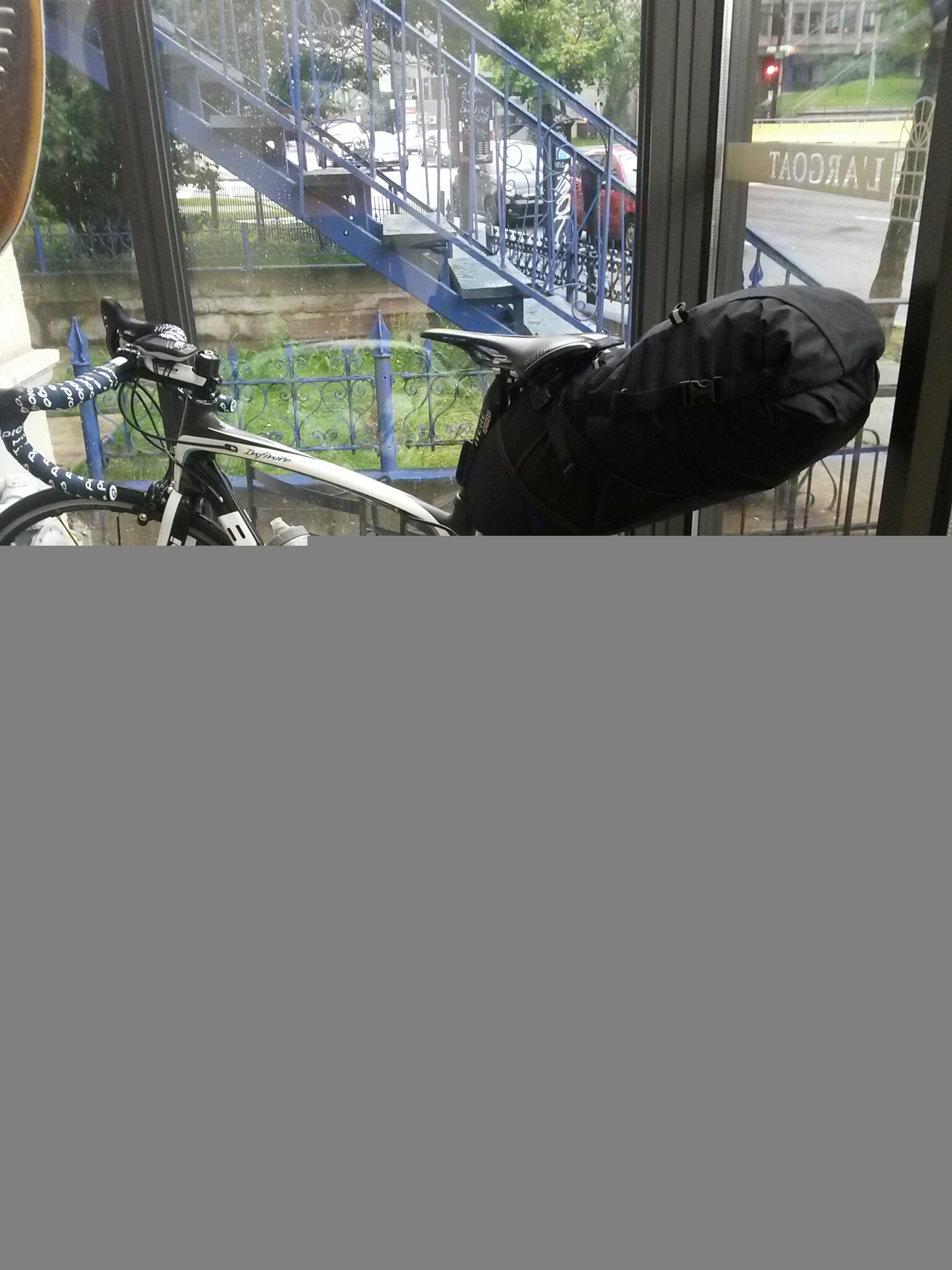 • Revelate, Rich. It’s good and strong and vertically solid (it sways left and right, especially when climbing). No camping this time, no. I wanted to go super light and comfortable.