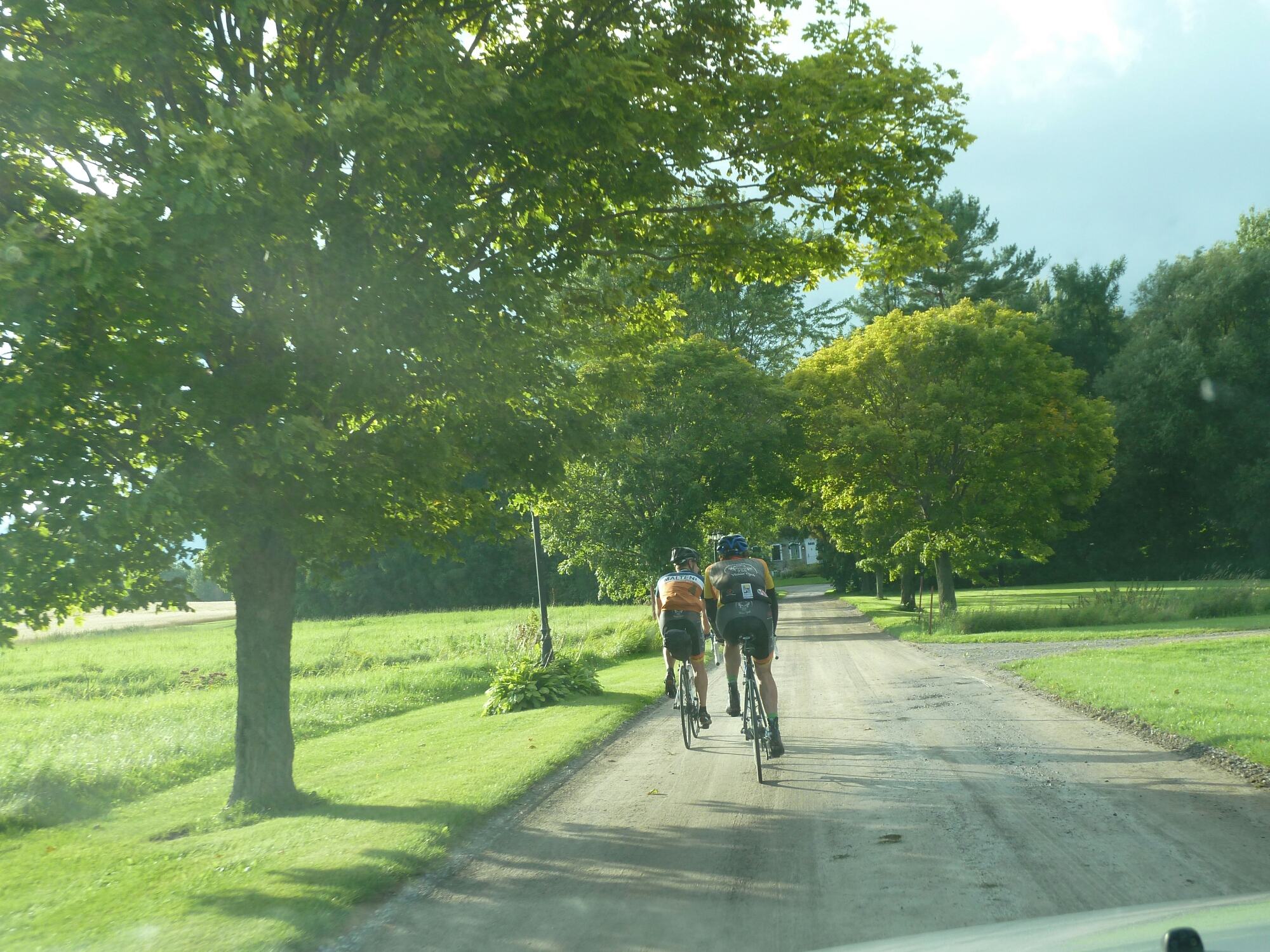 Pierre and Ginette made a trip down from Ontario to ride the first day of the journey with me, combining it with some family time with their Quebec relatives. Gin drove support so this will be the only day you’ll see action pics of me, I think. I know, I’m disappointed too.
