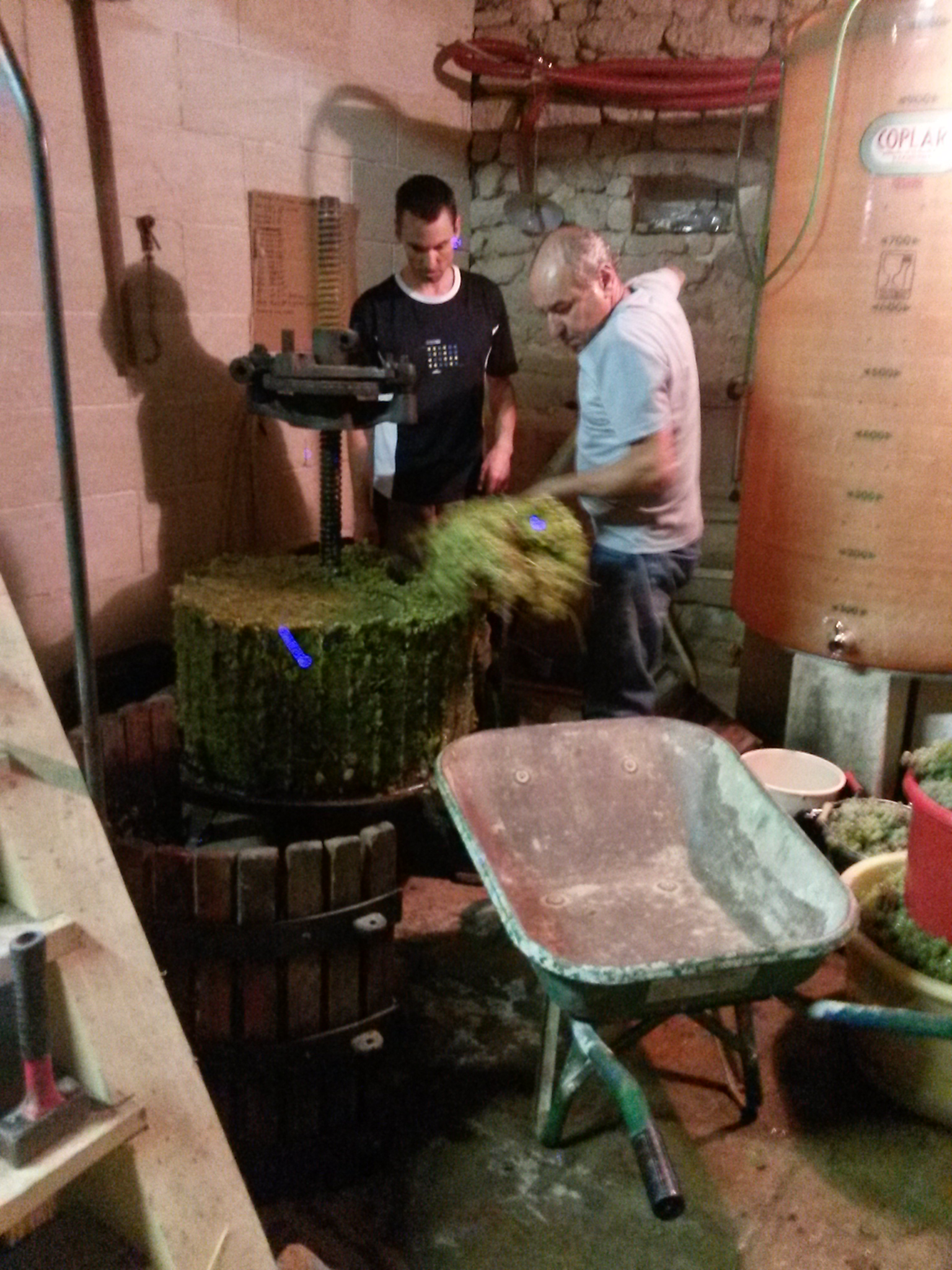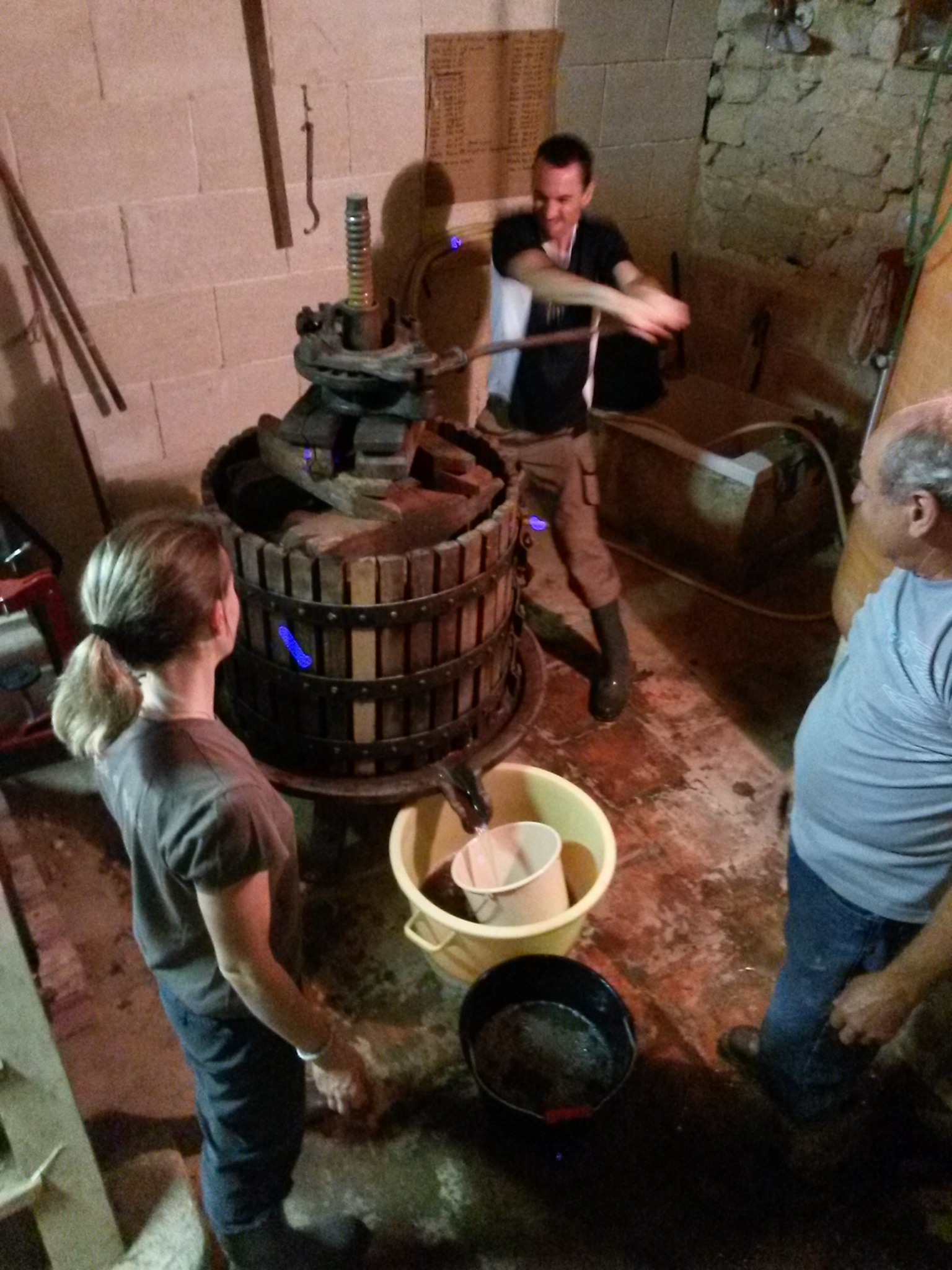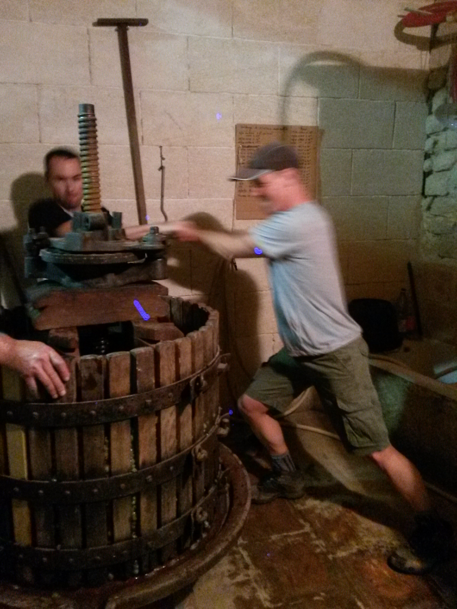 Christian, forking out the remains of the grapes after pressing. There were still plenty left unsquished, though, which dictated more traditional methods.