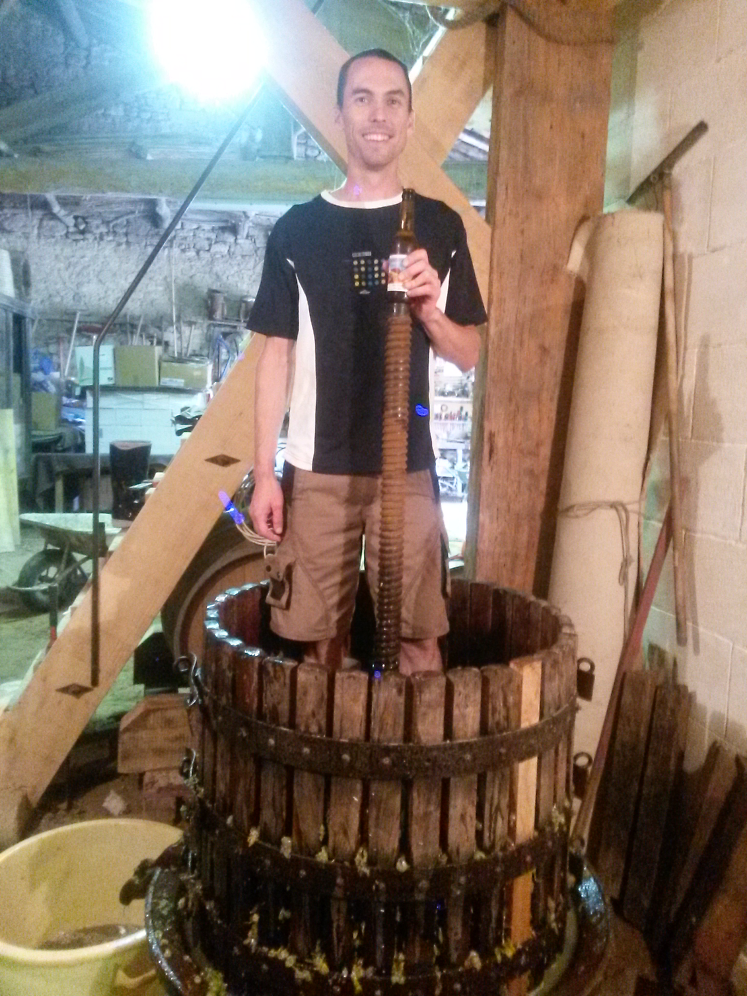 The press, Anne’s great grandfather’s, was pretty old but really ingenious, too. It did take some upper body strength, however, which cyclists normally lack.