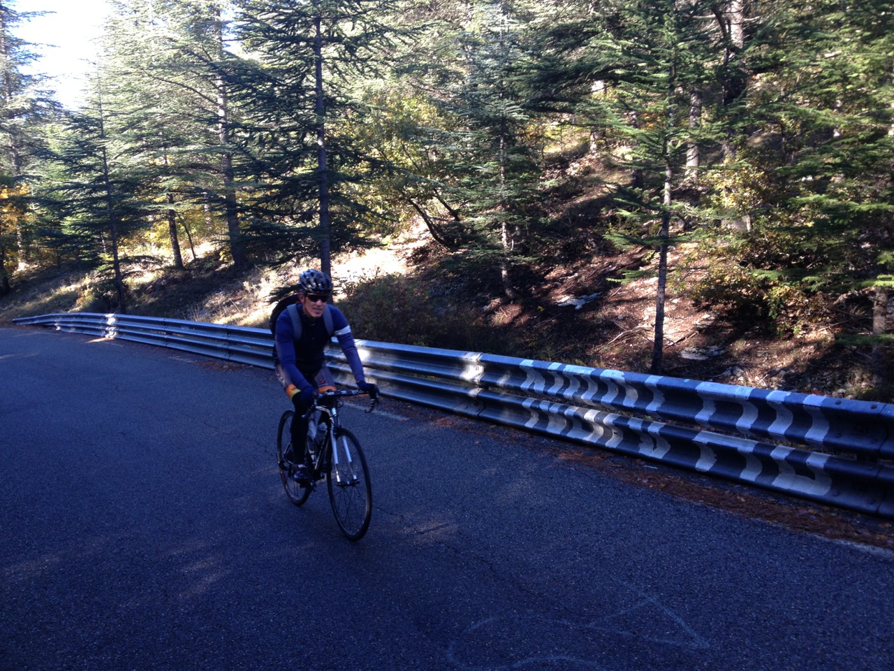 On the other hand, my real legs didn’t feel too hot and I slogged up the mountain, wondering where my next pedal stroke was going to come from. Then again, it was such a beautiful day – and we had the whole mountain to ourselves – I won’t whine, too much.