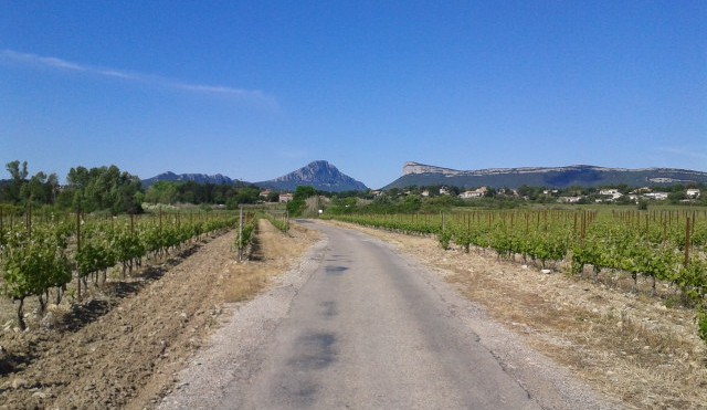 After crossing the timing mat for the penultimate time, Greg (this could be my buddy or it could be me, since someone I had just met in the morning yelled it at us) and I flew out of Valflaunès and started the 4 km climb between Hortus and the Pic. We summited, started the descent, then saw two guys with impossibly long legs cruise by, yelling ‘Allez, venez!’ They said it with such authority I thought I had no choice, so I jumped on the wheel, Greg trailing behind. This was very timely because we were just about to hit the one long, flat stretch that had a strong headwind. Legs 1 and Legs 2 took turns at the front while Greg and I hung on for dear life. I did take two token pulls, but they didn’t seem fussed about it either way.