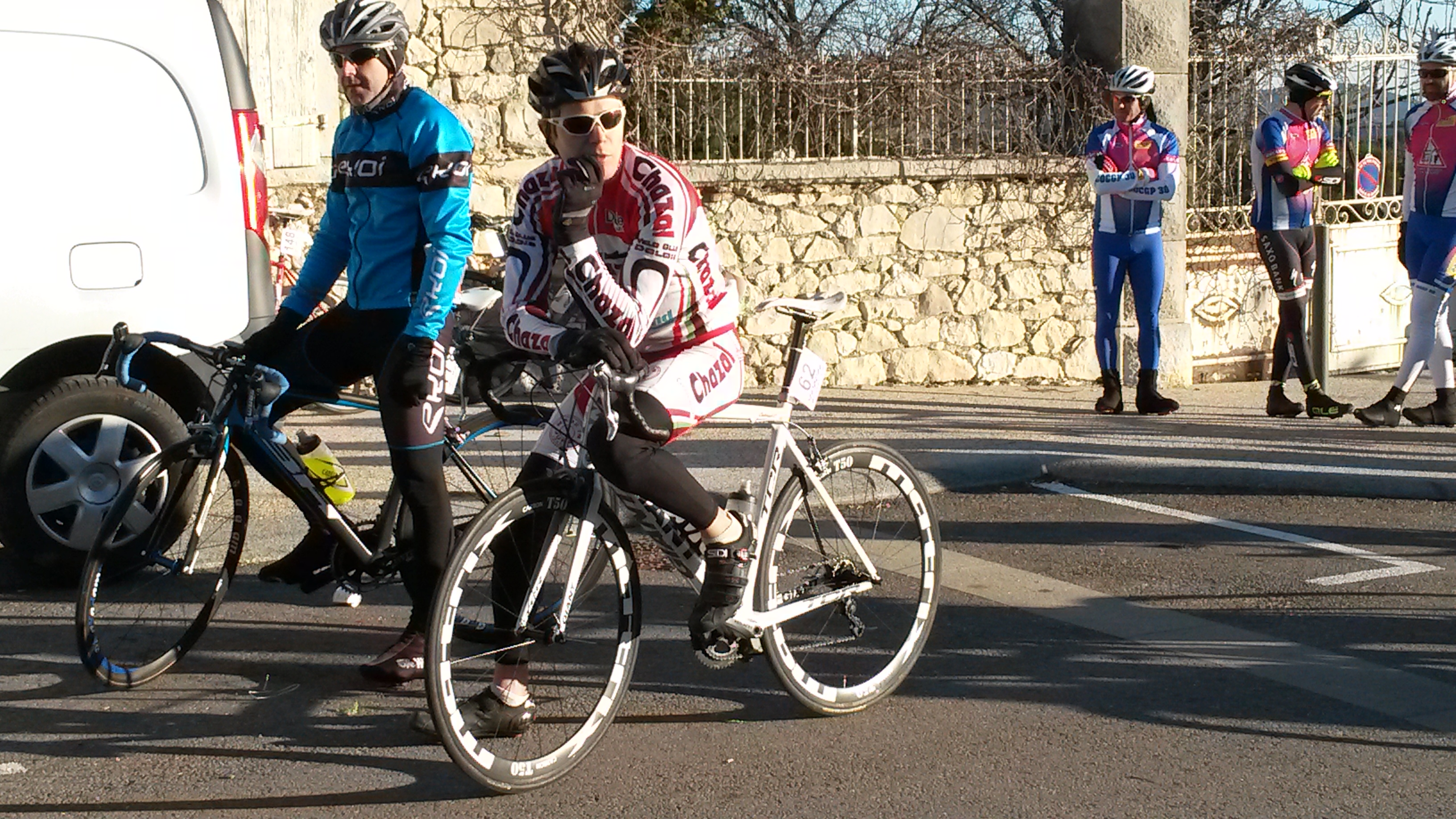 A bit of official stuff…The race is organised by us at Sud Vélo Ne Jetez Plus but subject to rules of the FSGT, one of the several sporting federations in France. The FFC (Fed Français de Cyclisme) is the official federation and all others are secondary. The FSGT rules are that all riders with a licence FFC or without a licence have to compete in the Cat1 group…we made an exception for you and put you in cat2! Cat 1 FSGT is rougly the same level as Cat 3 FFC. For example in Team Sud Vélo we have two Cat 1 riders and two Cat 2 riders, and they all have too many FFC points to be allowed to compete in our race…they’d win too easily, in theory!