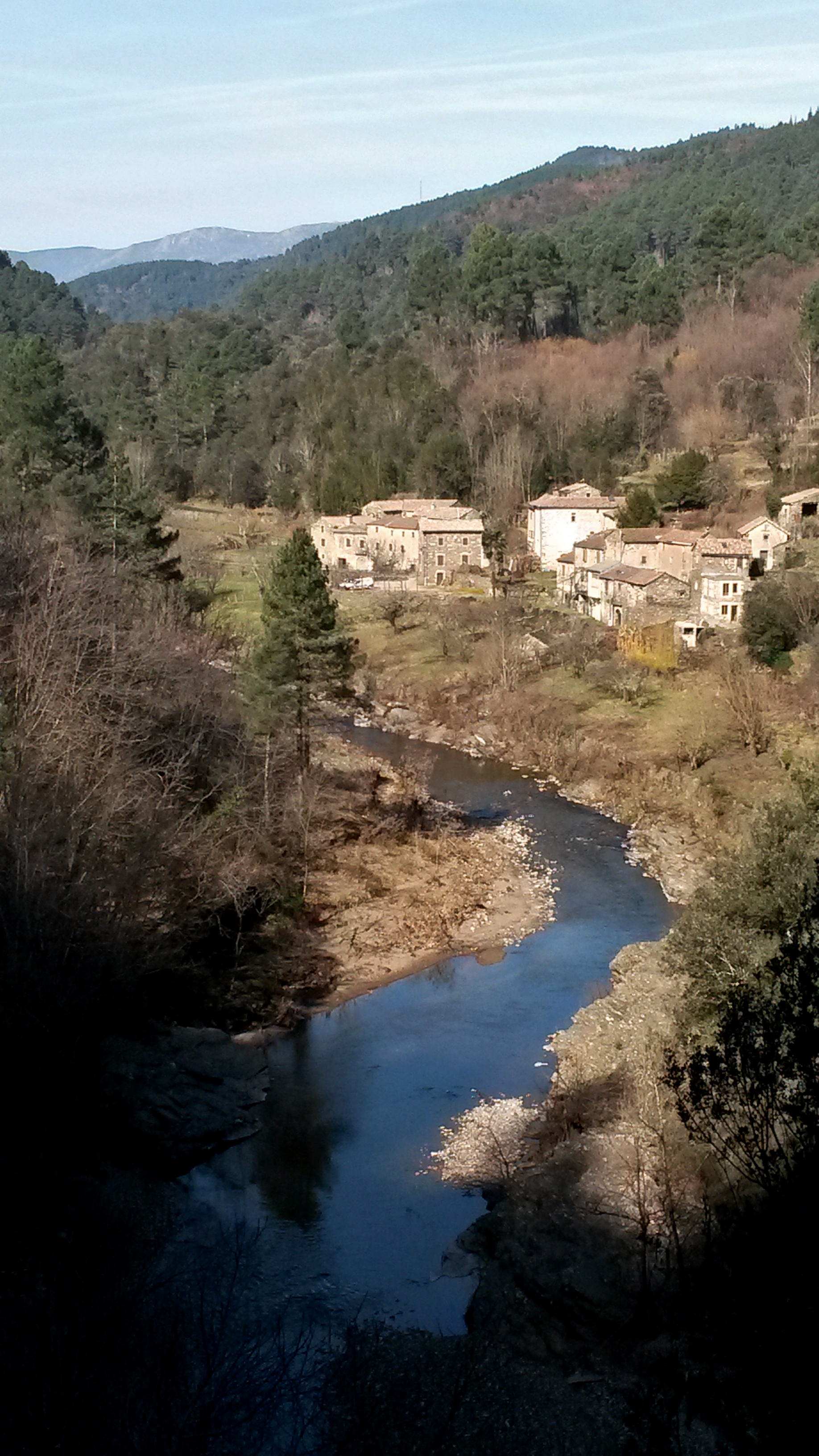 Back to today. The aim of the ride was to climb to the Chateau de Portes from 3 roads, with a few extra cols thrown in to keep us honest. We were feeling so fresh on the first pass that we didn’t even stop to take a photo; the one below is from the descent into the Land That Time Forgot. For those who have an idea where I’m writing about, that’s Mt. Lozère in the arrière plan.