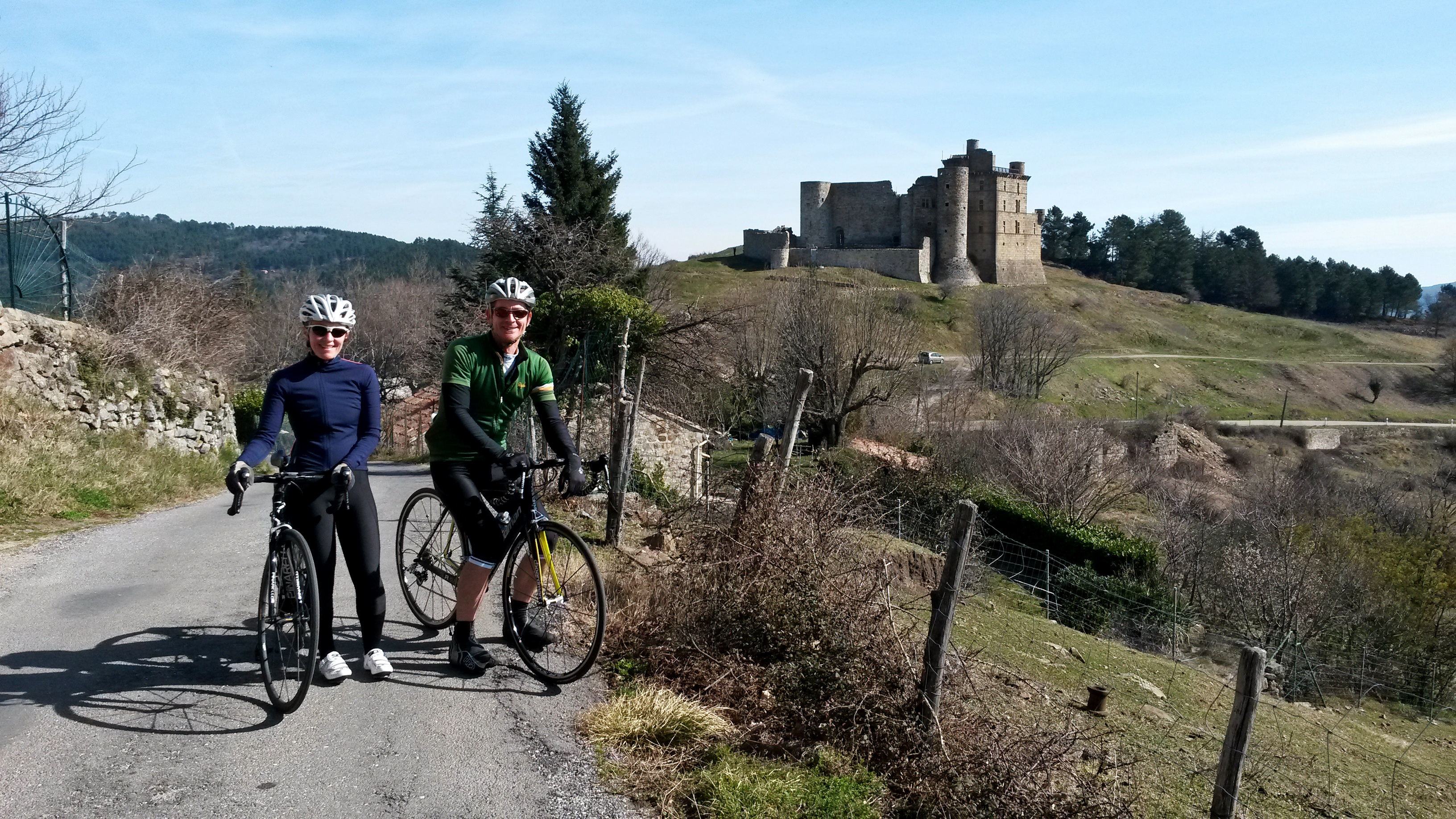 The ride from here to the chateau was a real joy, following the ridge you see to the left. The views over the high Cevennes was nearly worth the battering our legs took on the earlier part of the climb.