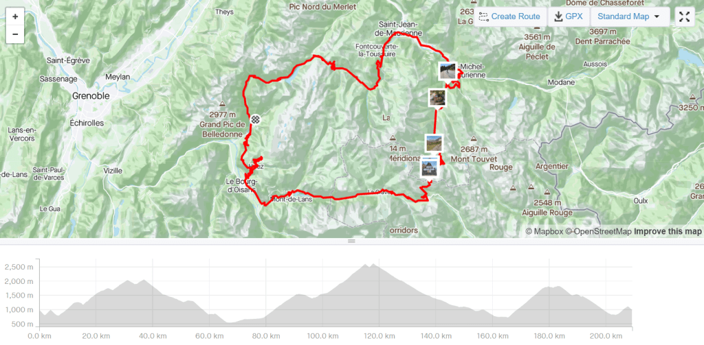 Then comes another guy I know, this time in France. He’s not retirement age yet, but no spring poulet either. Here is his ride the other day – the Marmotte Alps route with ‘a little more’ added. Over 200 km and 6000 m of climbing.