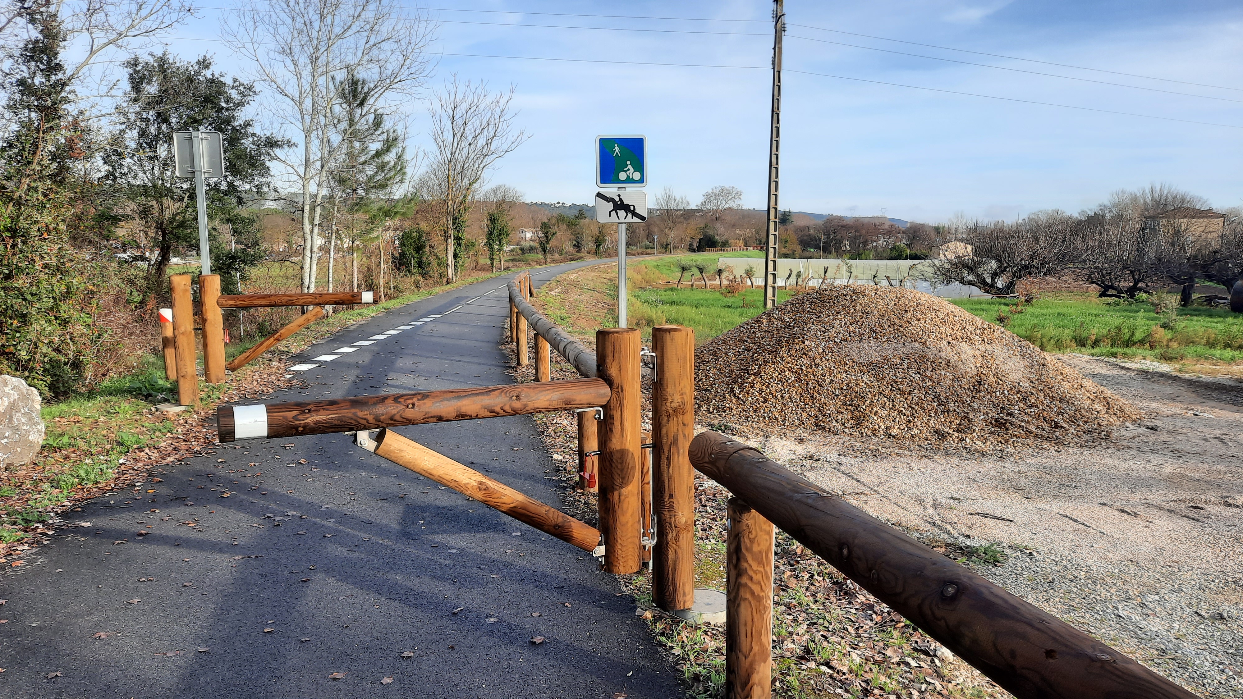 While I was confining myself this year, the local government of Uzès, north of Nimes, appears to have been busy building a new voie verte (cycling path / greenway in French) that will be a welcome addition to the neighborhood. This one – like most of the others I’ve been on in France – is built over an old railway, but more importantly, it follows a National Route. Riding on this fast road is fine for a road bike (there’s a big shoulder), but for families and leisure cyclists, it’s probably not the best choice. There is a series of small roads on the other side of the National that works fine, but the voie verte is just that much easier to follow.