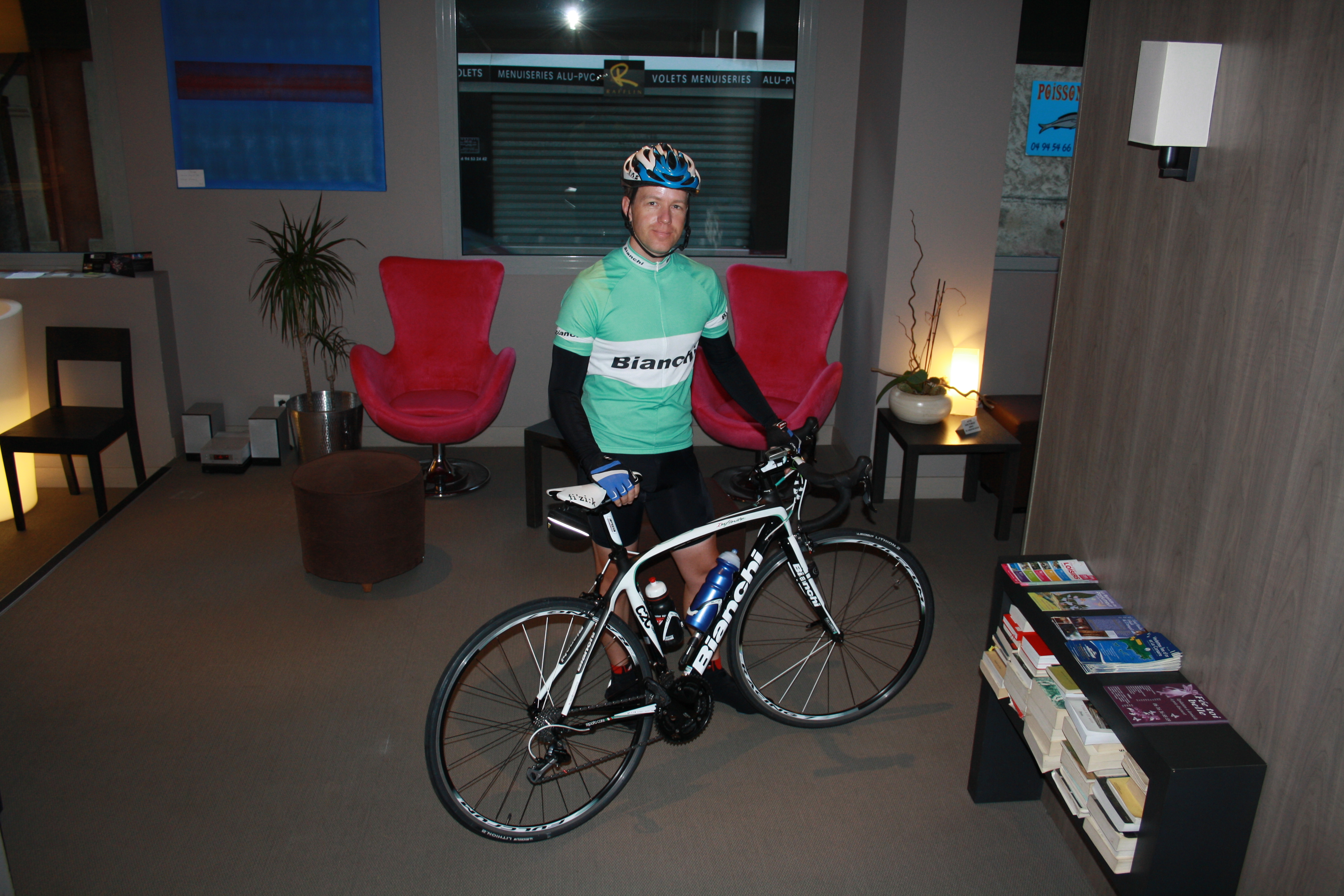 I got really serious about training and watching my diet the rest of 2012 and the first half of 2013 because I was training for my first Haute Route. This is me – alongside my step-brother Rob – the day before we started in Geneva. I’m 65 kg (143 lb), or 12 kg less than when I bought my Bianchi in 2010. This shape stayed with me till around 2016, when I lost my focus and rediscovered craft beer. It’s been a downhill ride ever since.