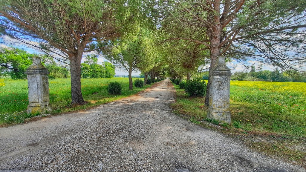 In order to keep some blogging balance, here’s a photo from today’s ride of the south of France – specifically right at the city limits of Nimes. If you are interested in getting married, the chateau at the end of this gateroad will take care of you. Hell, I might even make the trip over from Andorra to help you celebrate!