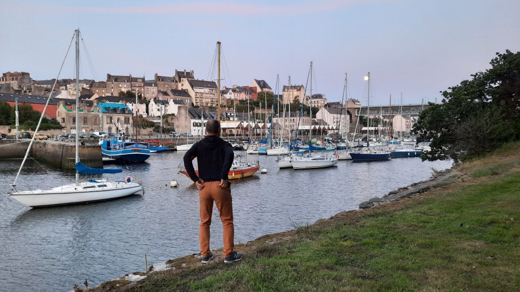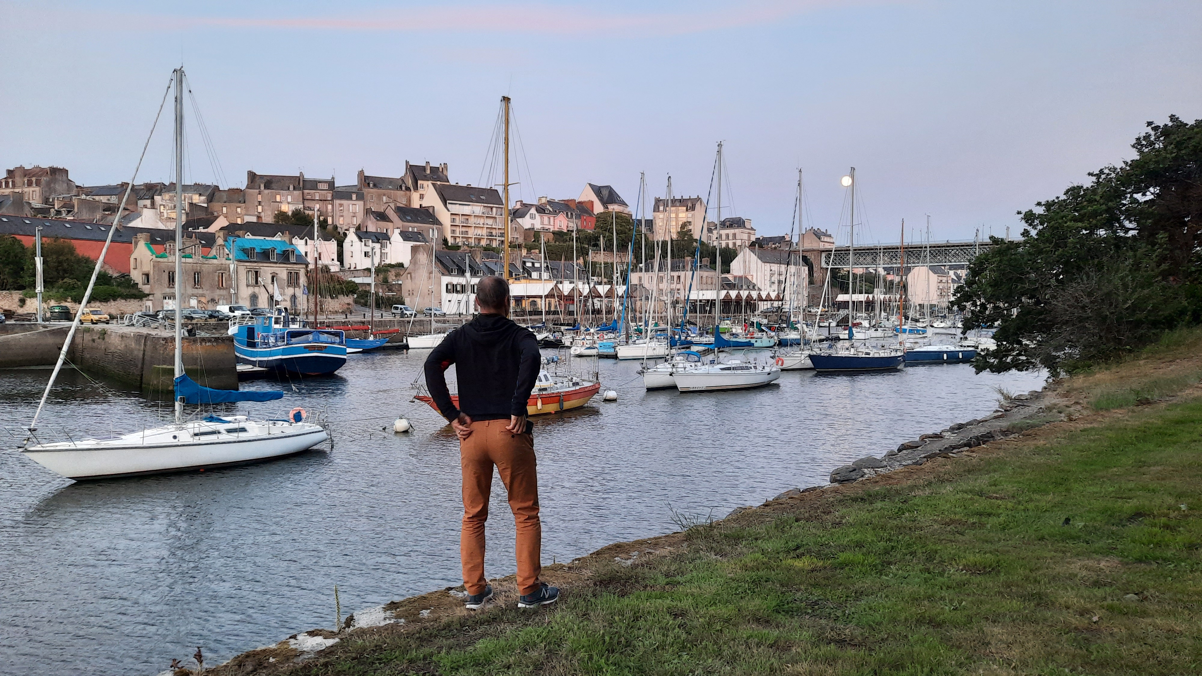 This is Karsten looking at a near-full moon in the ‘pleasure port’ of Douarnenez.