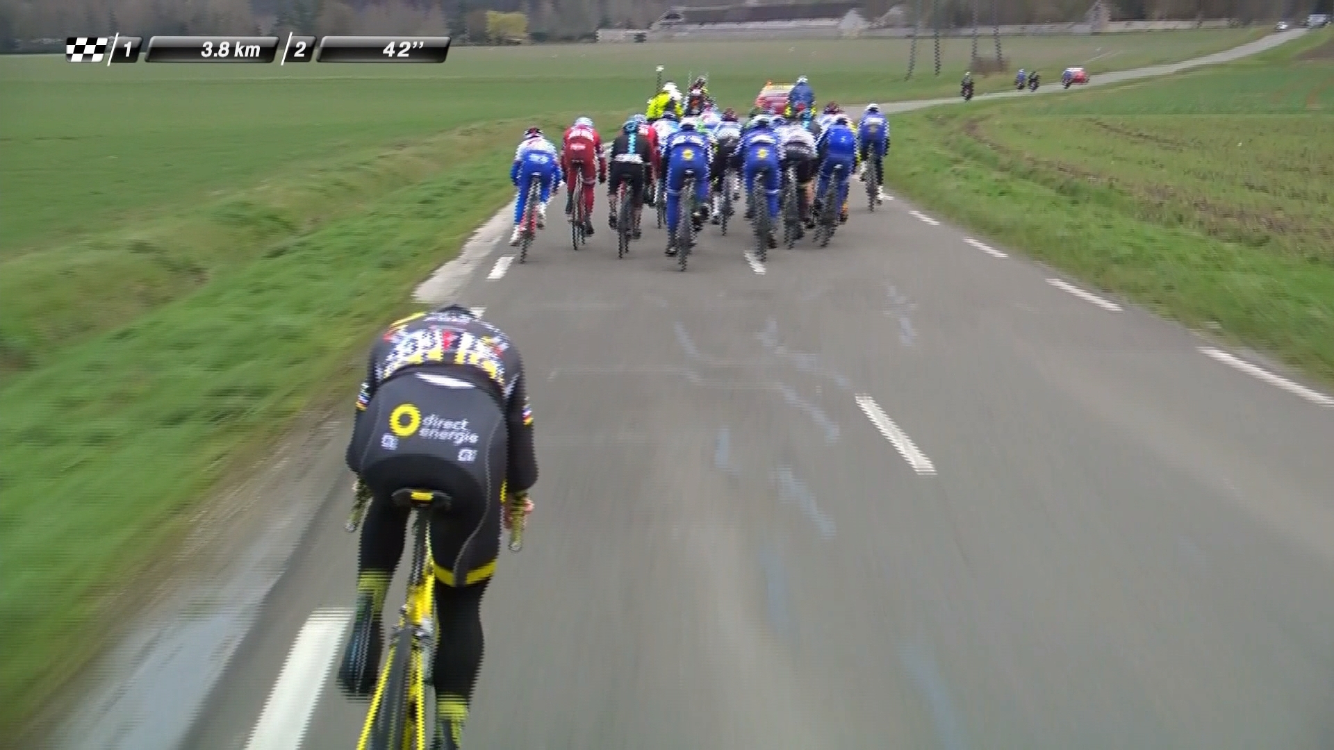 If a rider “goes through the window”, that unfortunate person has either been dropped or surprised by the group’s acceleration and can’t get back on. This happens in nearly every breakaway of any significant size, usually on a hill, or in the wind, like the poor Direct Energie guy below.