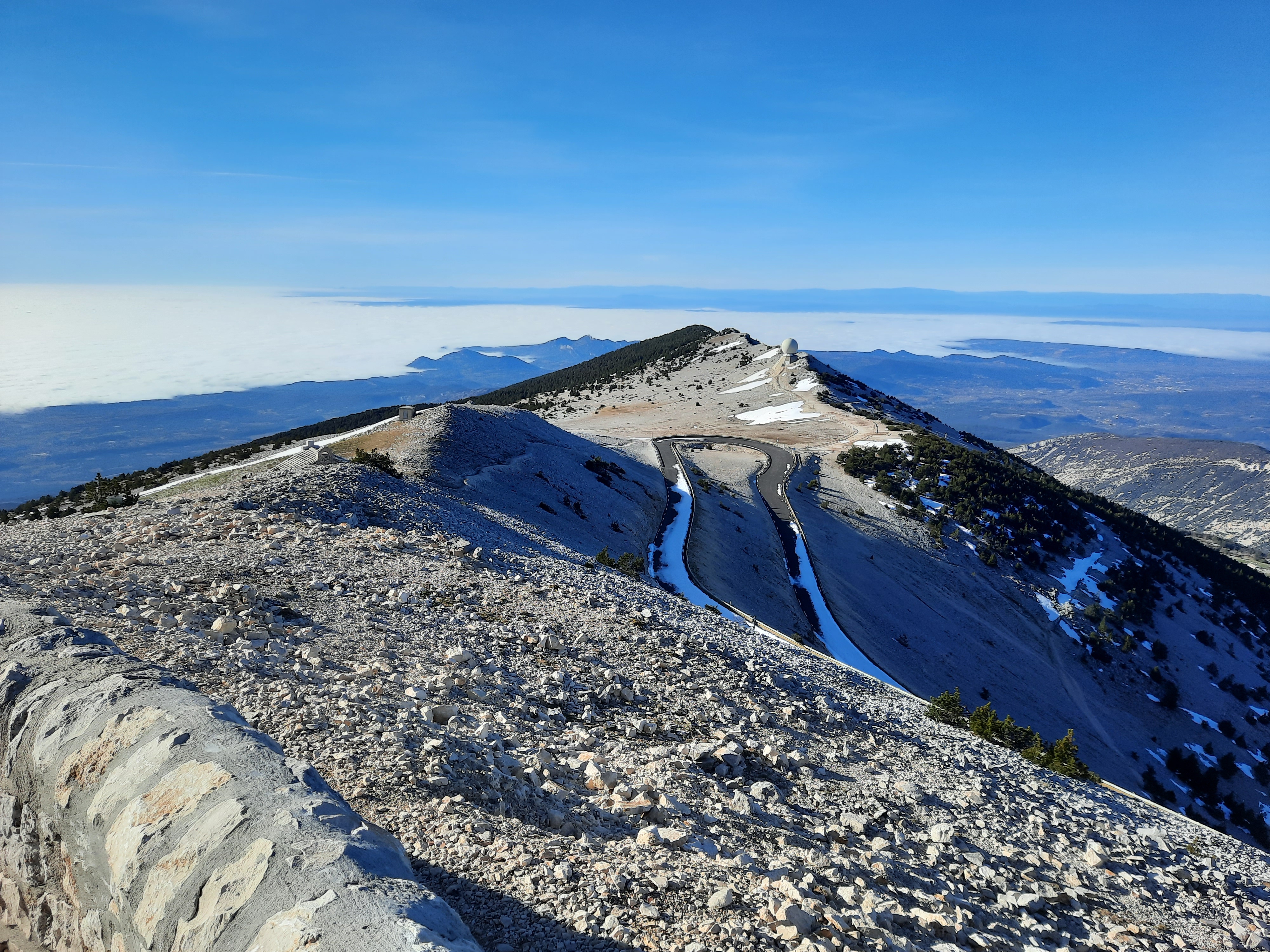 A few years ago in the middle of January it got warm and most of the snow melted on top of Ventoux. I had good intentions of climbing it one day, didn’t, then it snowed the next. I was not going to let the heat wave we’re having right now pass me by!