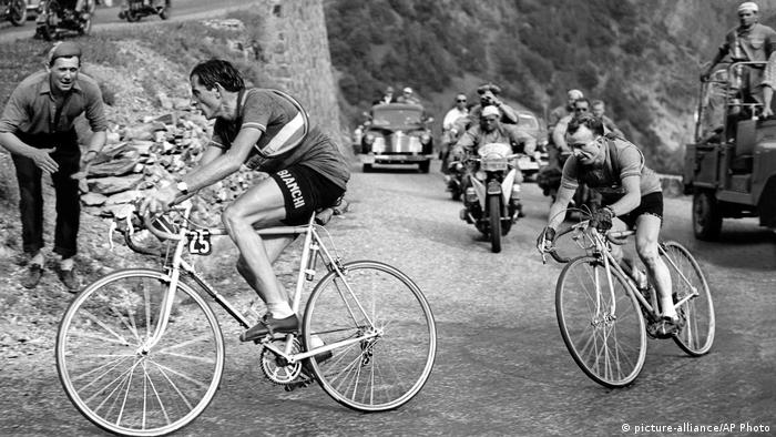 And then there’s the all-important weight of the bike. I couldn’t find Charly Gaul’s, but I see that Jacques Anquetil’s Tour de France bike in 1962 was 10.2 kg, so it couldn’t have been lighter than that, I guess. Pretty much everyone after carbon fiber came into the picture has been at the same weight (the minimum allowed by the UCI):