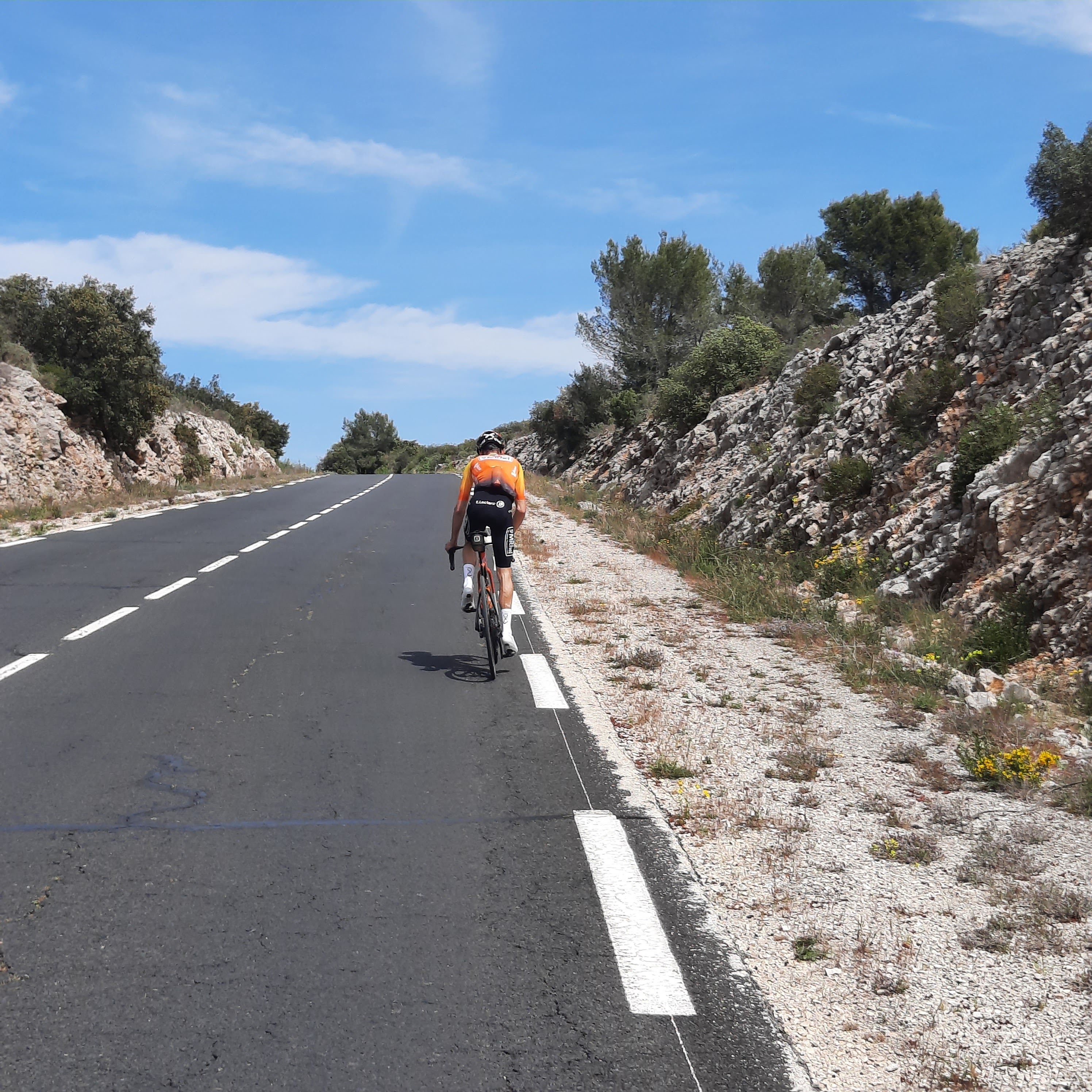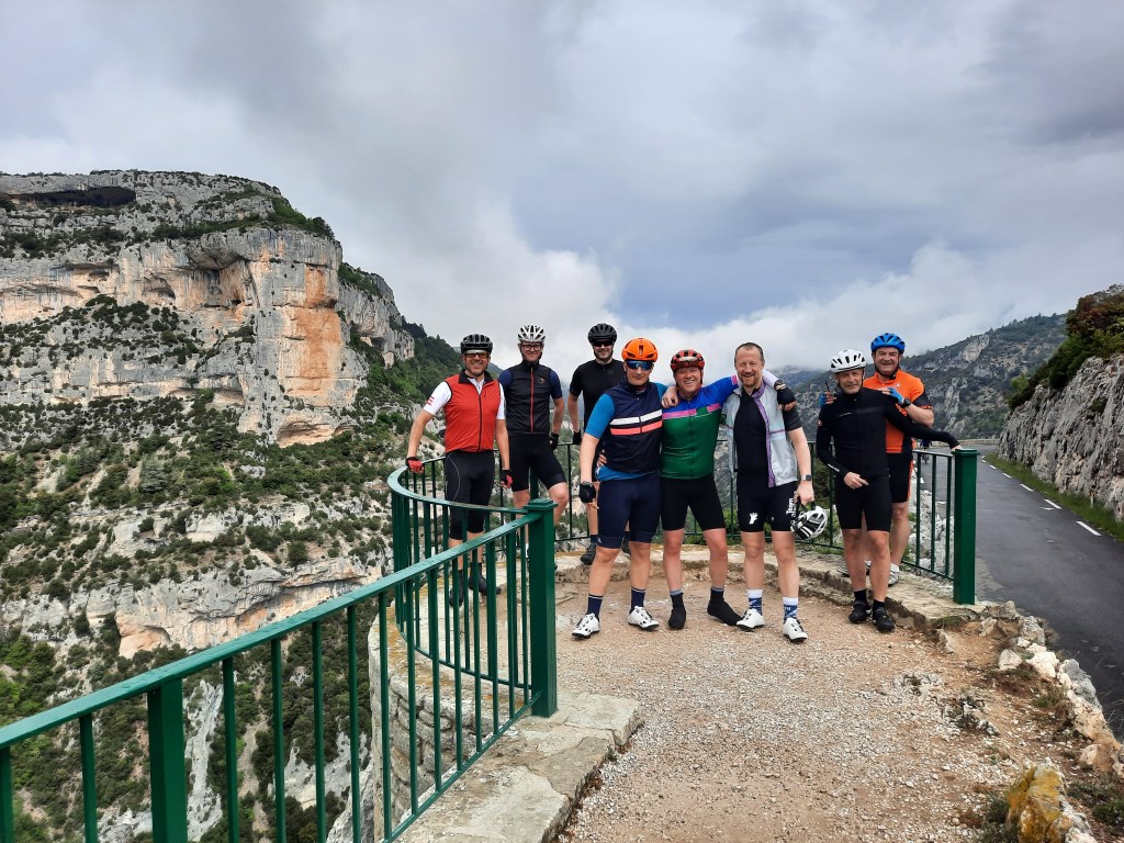 Next, everyone’s favorite climb-not-climb in Provence: Les Gorges de la Nesque. This was my first tour of the year – 8 friendly guys from Bristol.