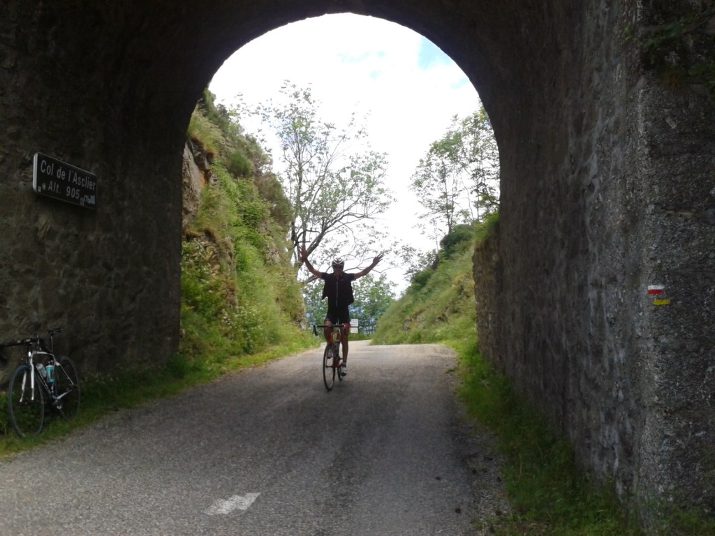 The other day on my ride into the Cévennes I climbed up to the medium-sized Col de l’Asclier, the highest point on my ride at 905m. It’s a long and steady climb and you get views of the pass from far out, which is when I started re-wondering about this construction at the top of it – something I’ve been curious about for well over a decade now.