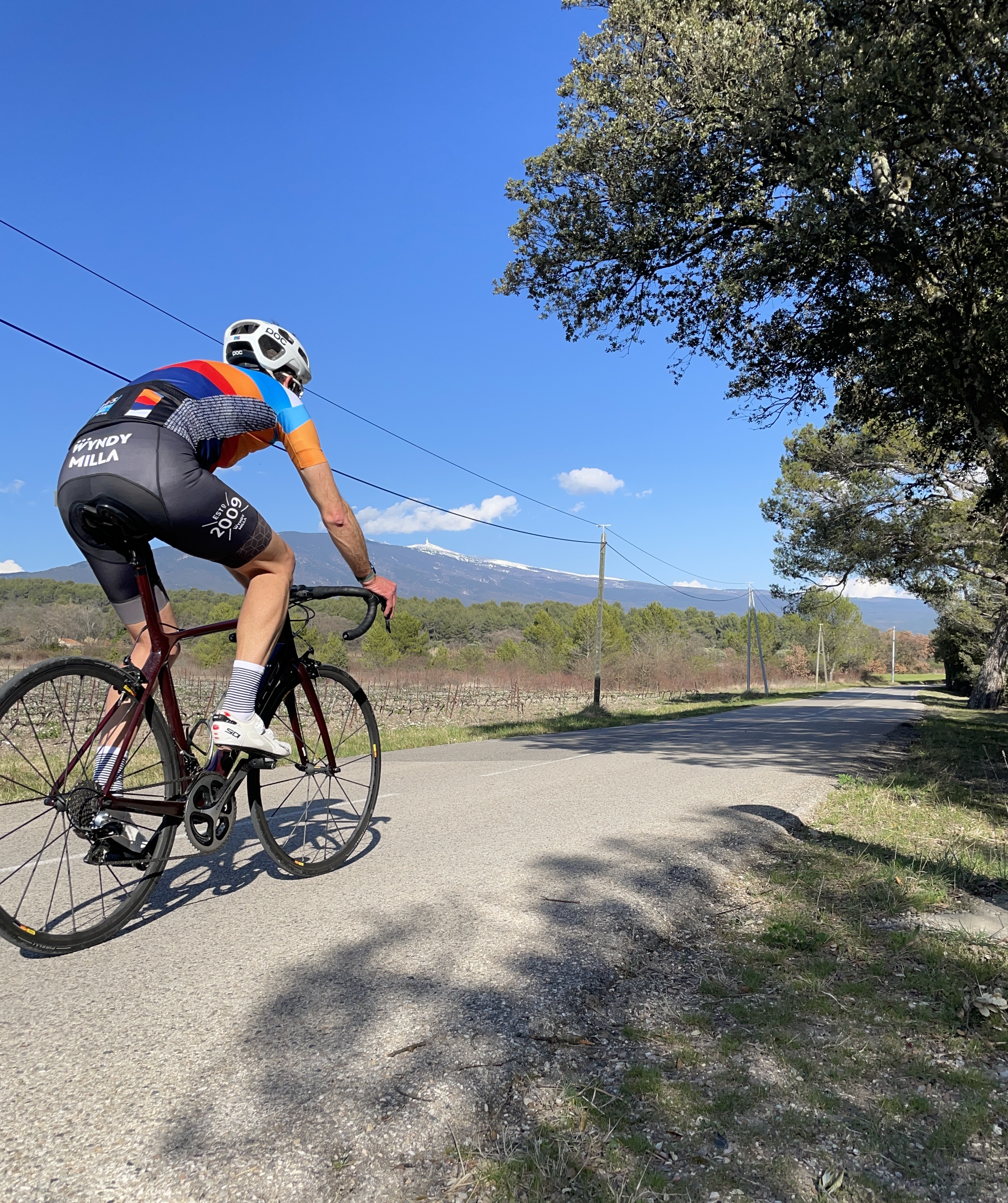 And speaking of Ventoux, there she is with my guide, Spencer, sporting 44|5 Cycling Tours’ 2024 jersey in the foreground.