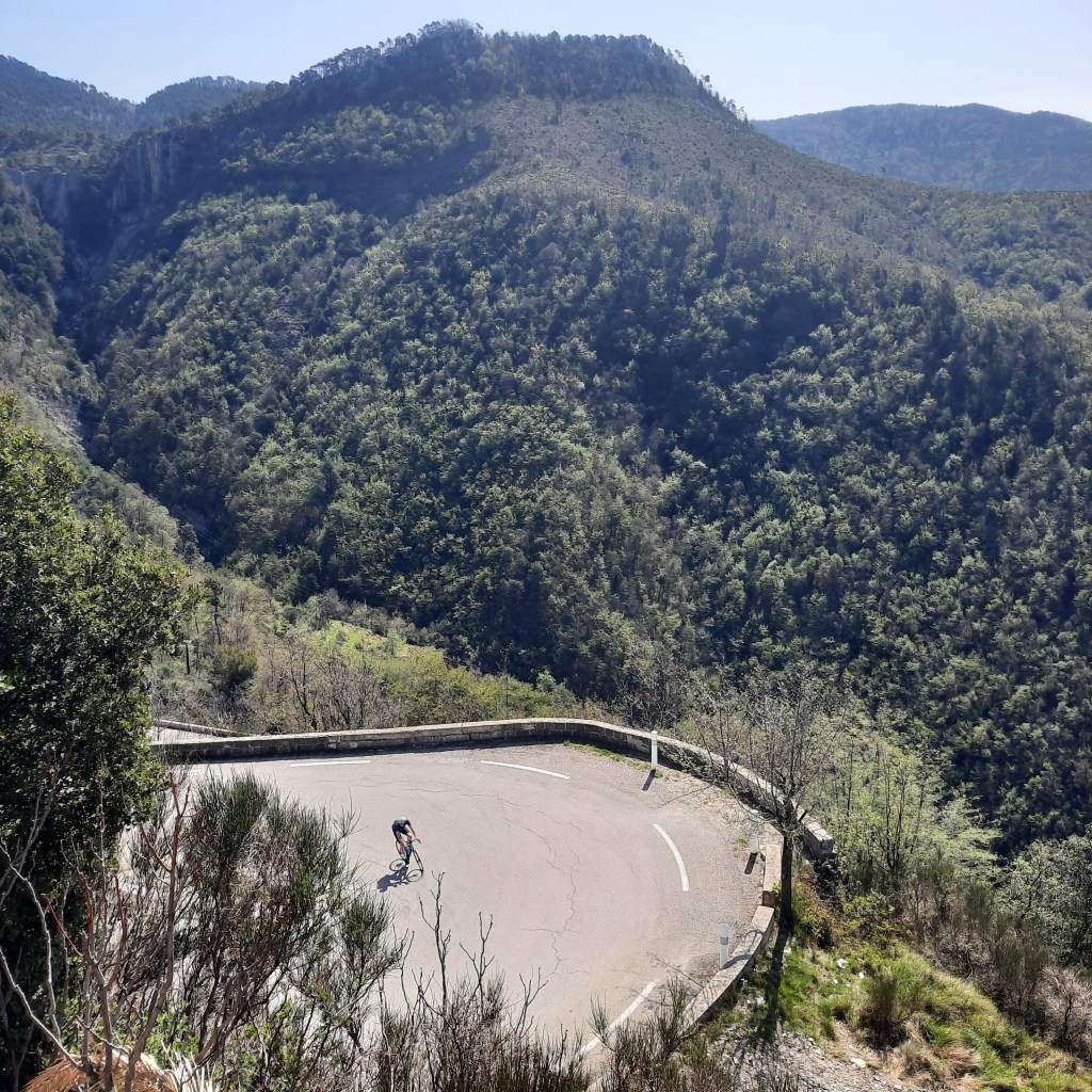 The next climb on the menu (Col de Turini) starts immediately after your descent, in the village of Sospel (water tap and two bakeries if you want to go hors piste and turn right into the village) and is the longest of the day (24km), but it’s not steep overall. Still, for many riders this could be a 2 hour climb, so saving energy here is going to be crucial later on in the day (for the mere mortals among us at least).