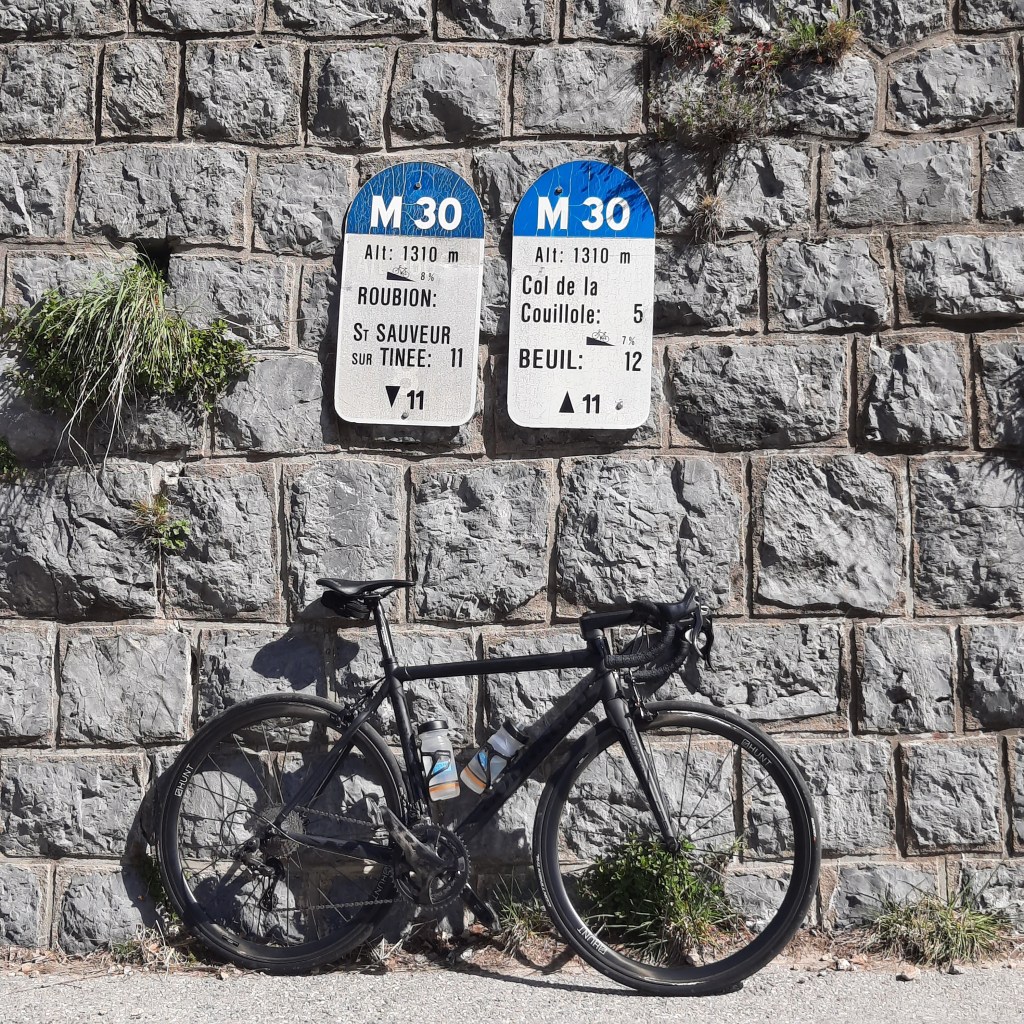 And so the tradition continues! I found the Col de la Couillole to be the toughest overall climb of our little trip. The stats tell the story very well here, which is not the case for every climb: from the bridge at the bottom it is 16km to the top, with an average gradient of 7.3%. It’s a very consistent climb and you will be looking at 7% and 8% a lot and nearly never anything below. If you like to pay attention to those markers that tell you what gradient you can expect over the following kilometer (example below), the last one on this climb says 6%, which is cute; I never saw anything under 8% and most of it seemed like 9%, right to the summit.