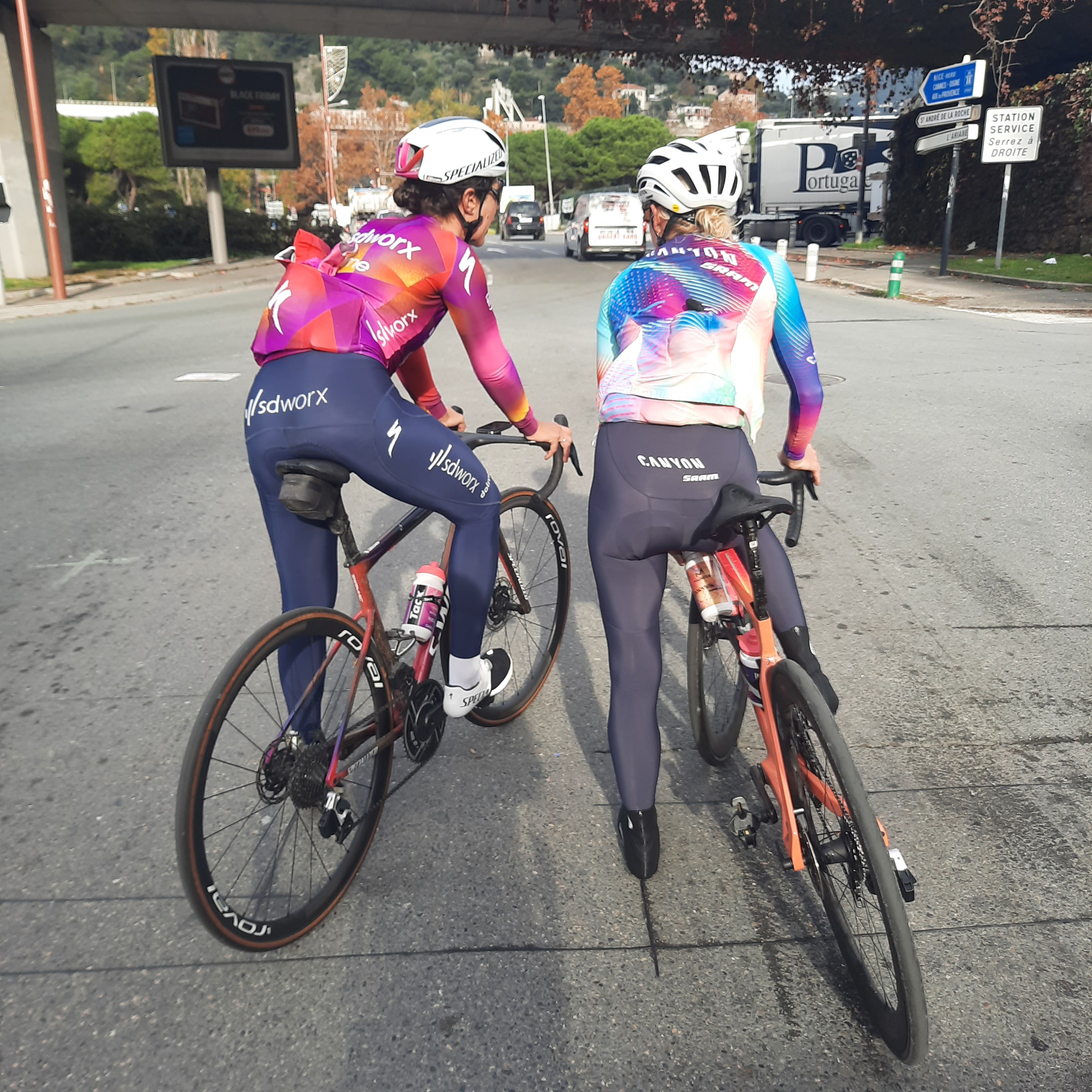 Bonus Photo: Two pros who passed me in Nice, never to be seen again. I saw at least 10 others on the road that day. My friends in town tell me that all the pros have returned from the beach and training has begun in earnest.