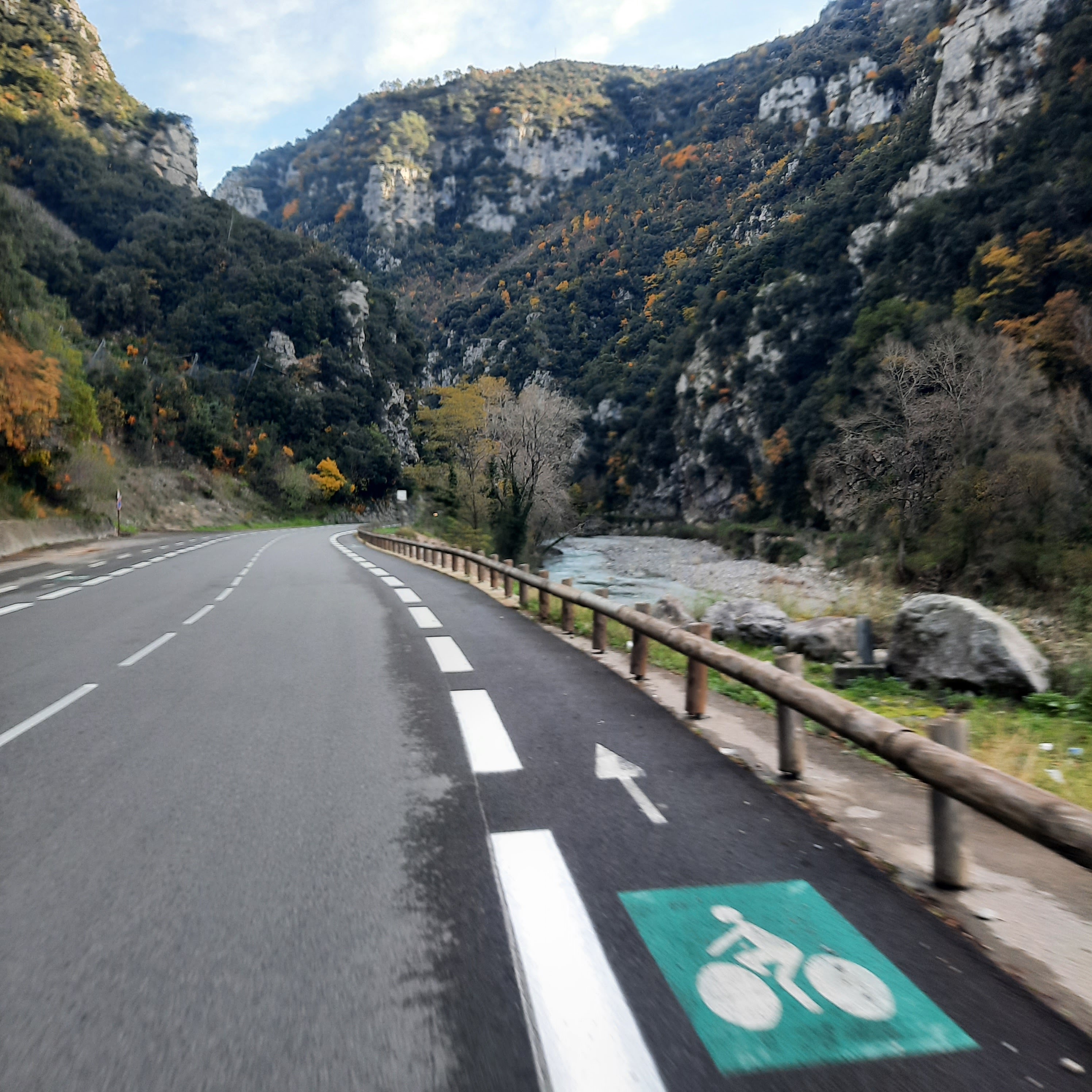 My route was a kind of loop, but the bit I was concerned about starts in the Vésubie Valley, at the north end of the route above. From here there is a fabulously quiet road that runs past the village of Duranus and ends in Levens. From there it’s all downhill till you hit the crappy outskirts of Nice.