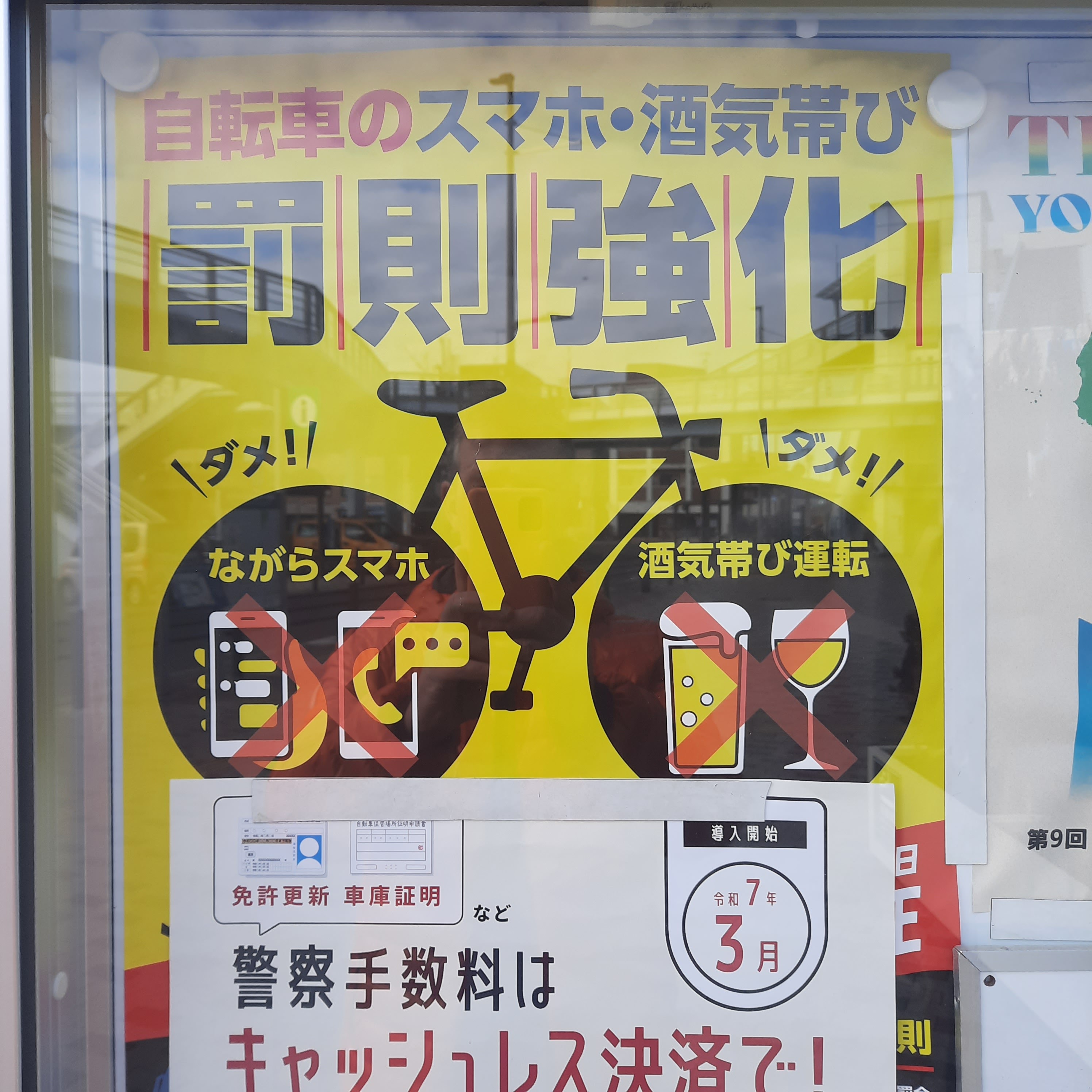 I’ll finish with a bike-related sign that tells you what you shouldn’t be doing – a very popular theme in Japan. In this case the word ‘Dame’ (pronounced dam-eh) is written above the front and back wheels of the bike, reminding us that it is forbidden to ride while drunk or when using your phone, one of which I’ve done in the past (before smart phones existed). I can confirm that the police don’t like it very much