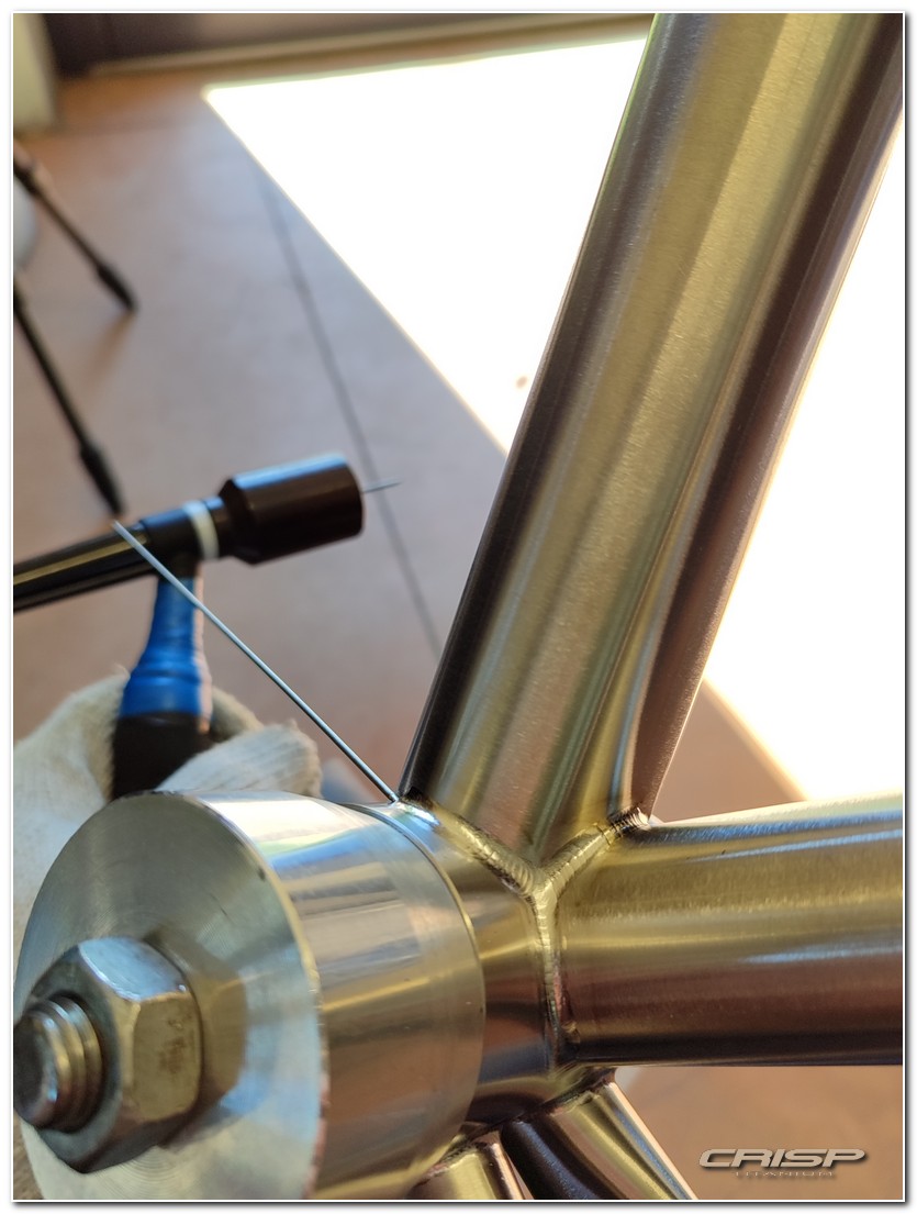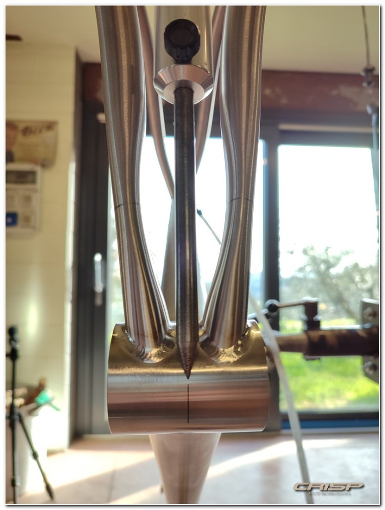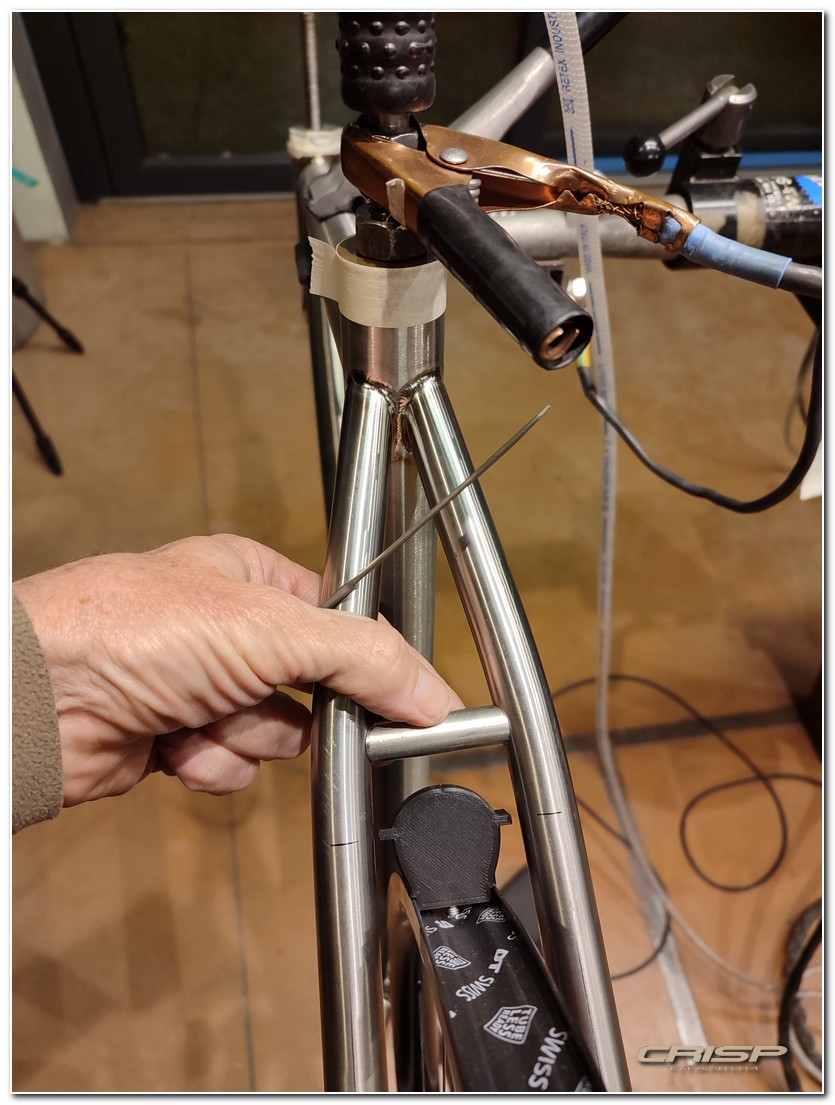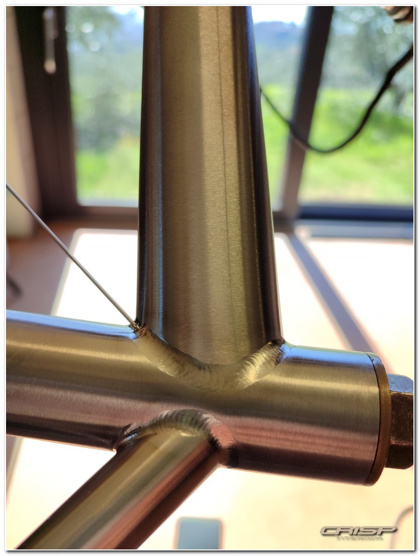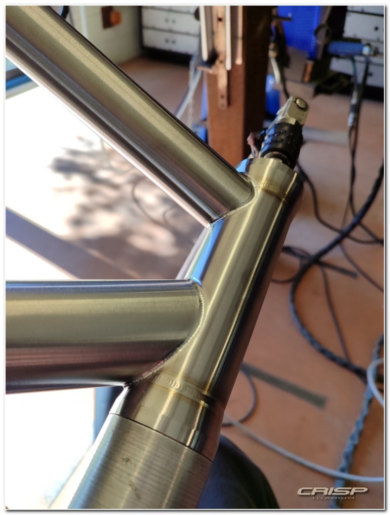 Crisp has been busy with visitors to his workshop this week, so my bike is taking form, but at a speed I can mentally handle (financially…another topic altogether). He is done the welding now and will be moving on to machining and final tolerance matching to components.