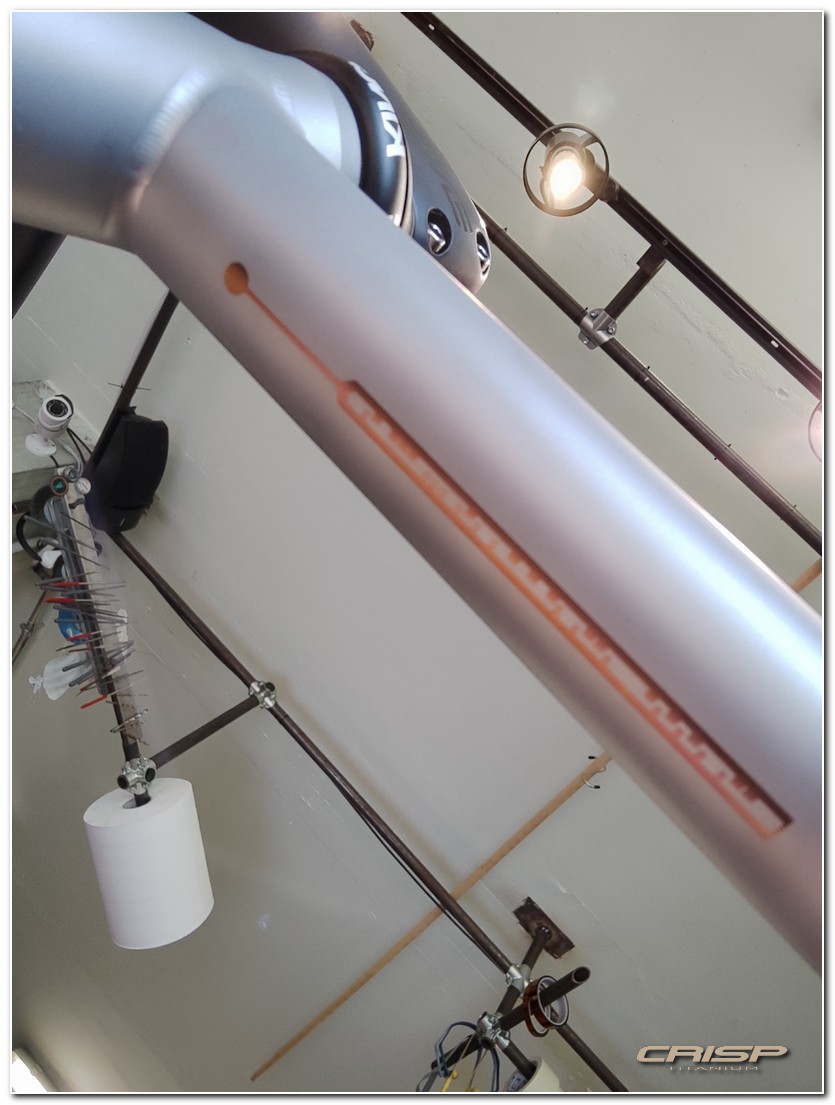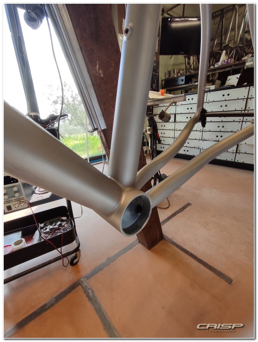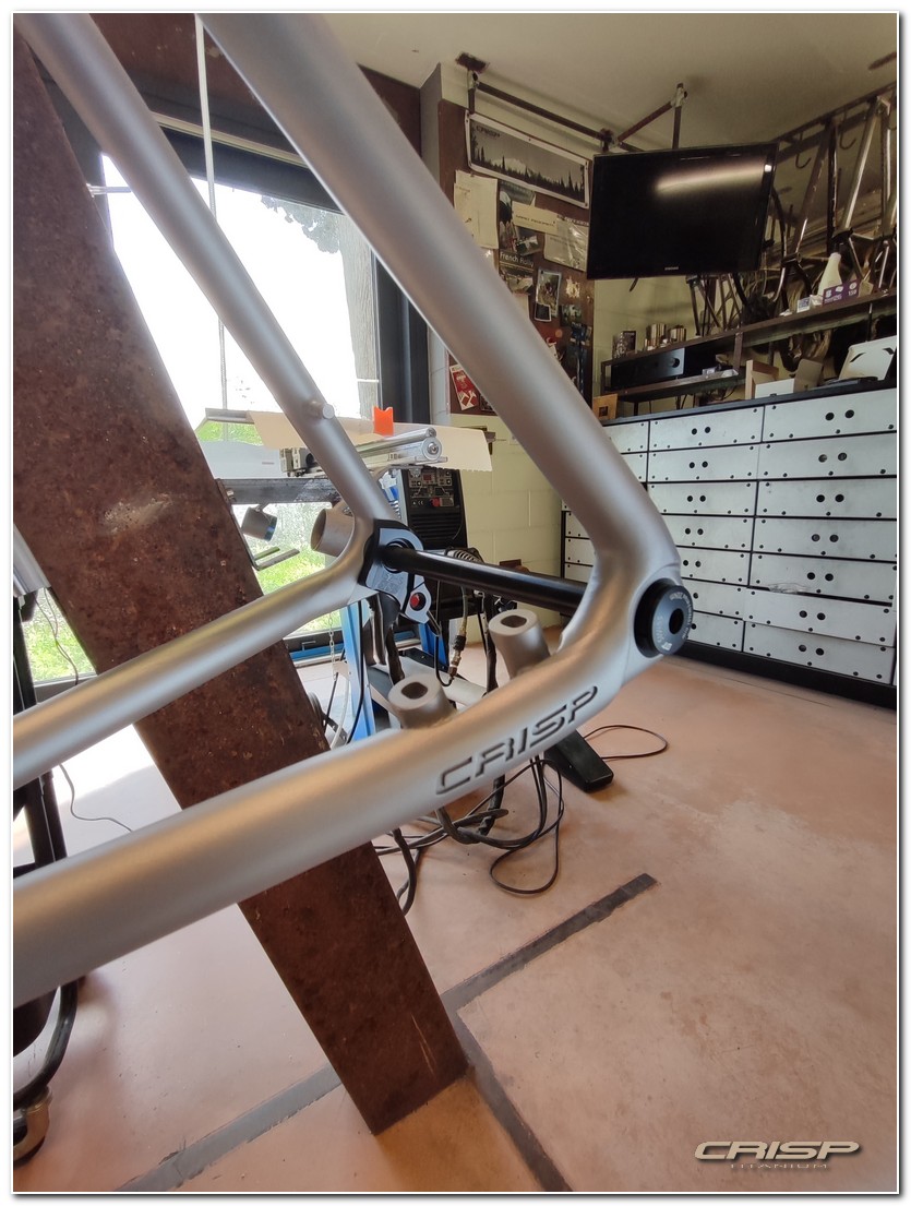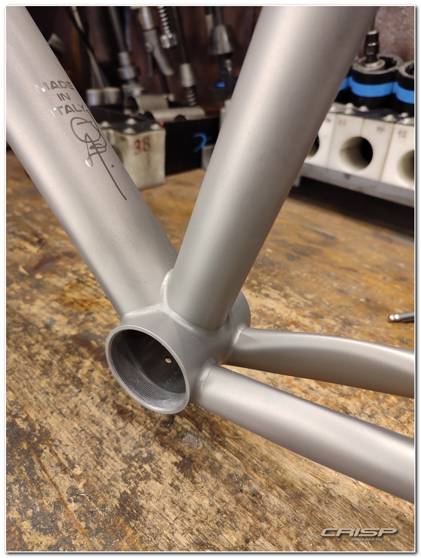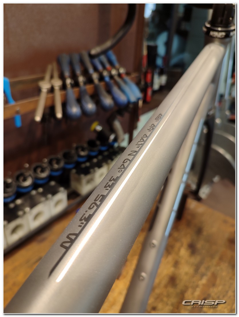 You’ll see that I landed on a no-color color, since I couldn’t decide on one. It’s best to be discrete with these things anyway, especially if I need to park it outside a cafe once in a while. The one bit of color is the blurry photo you see top left, which is my name in Morse Code (a Crisp specialty) and it’s under the top tube, i.e. invisible unless I run over you.