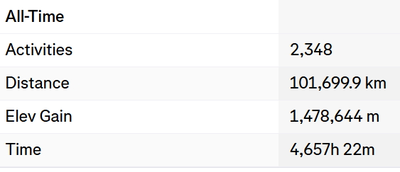 I just passed a totally random milestone (or kilometerstone, I guess) by reaching 100,000 kilometers ridden since I joined Strava 12 years ago.