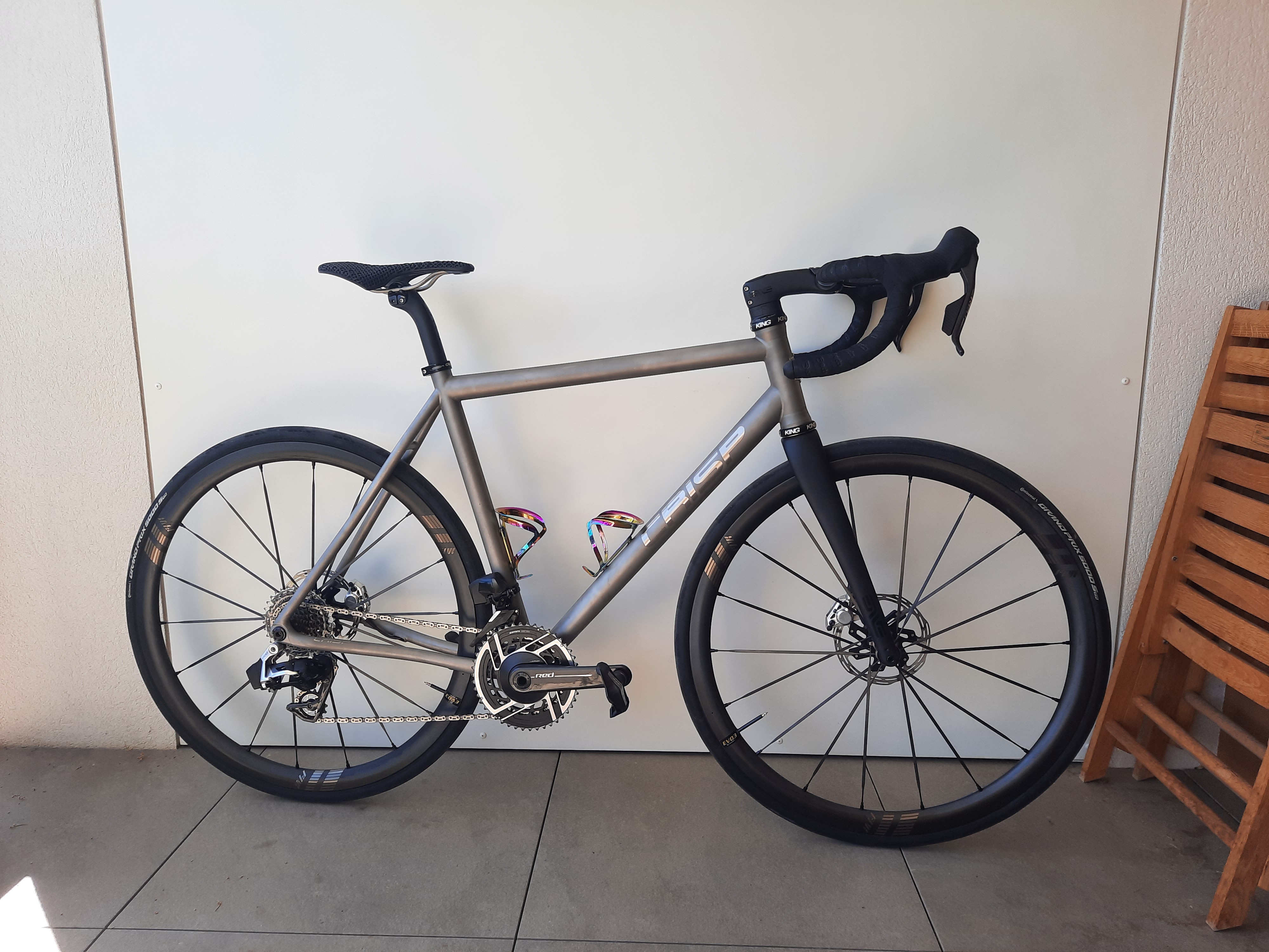 But even if I do take 2cm off the front end, it will be very far from the drop that I have on my Colnago. Below is a picture of the Crisp when I first bought it.