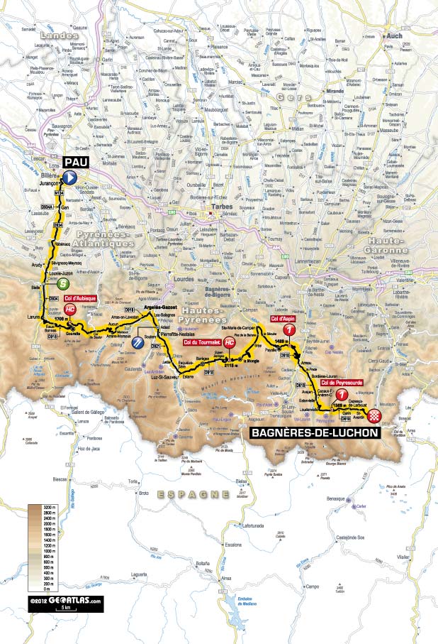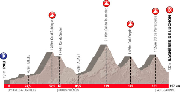 Act Two (Pyrenees):Saturday, July 14th. Pau – Bagnères de Luchon (Stage 16 of next year’s TdF)
