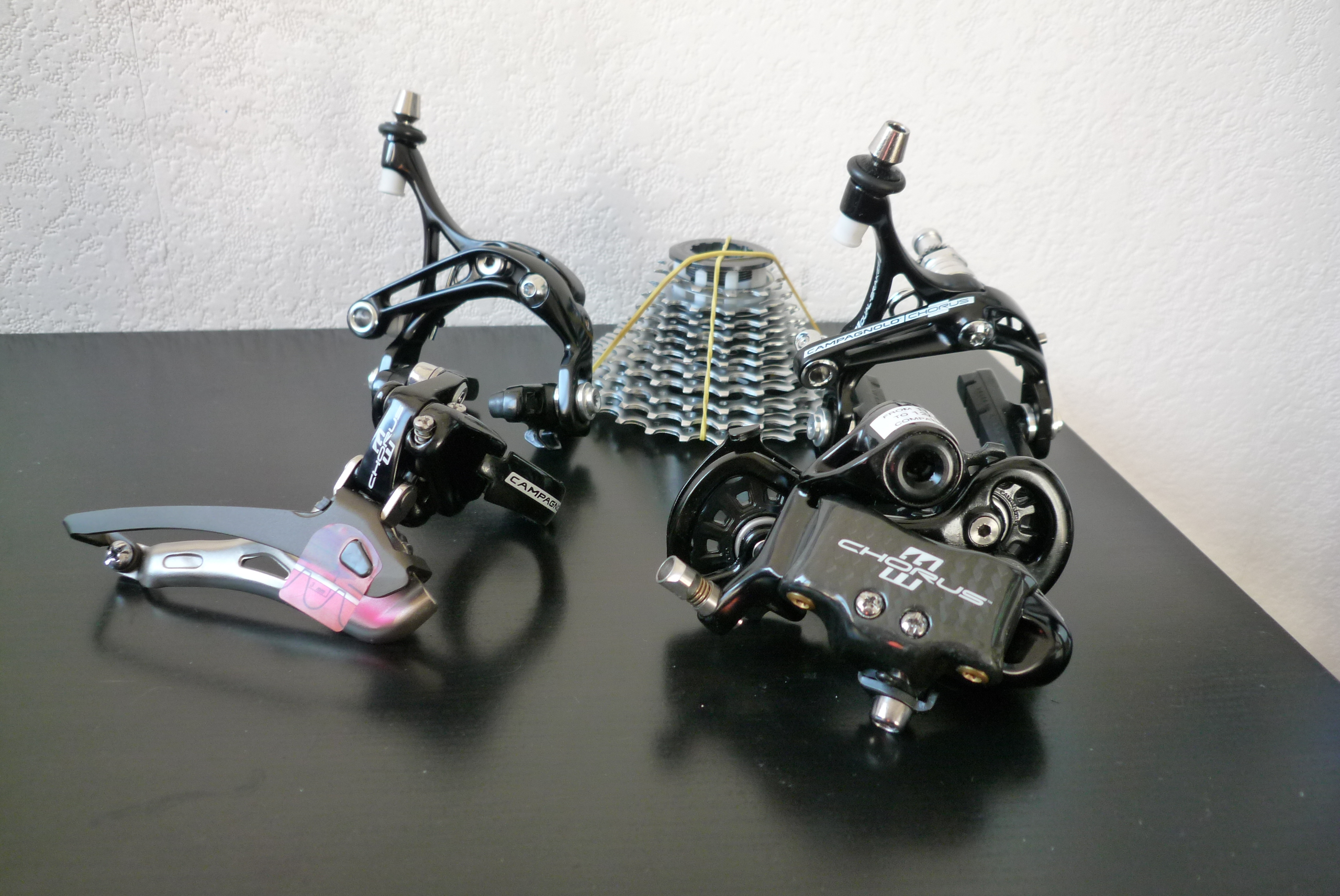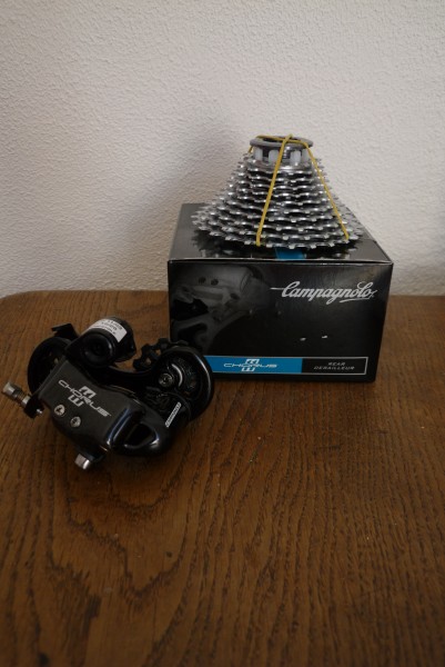 No, I’m not selling something on Ebay, this is my new purchase: a Campagnolo Chorus rear derailleur and 12-27 cassette. I’ve been humming and hawing over an upgrade of my drivetrain for some time and I found a nice ‘middle path’ way about going at it. Instead of forking out 1000 Euros in one shot, I’m securing the marriage by buying a couple of components at a time. Surprisingly, it’s the same price as a set; the only problem is that now I have to sit and look at these beautiful new pieces of hardware till I get all 8 components bought!