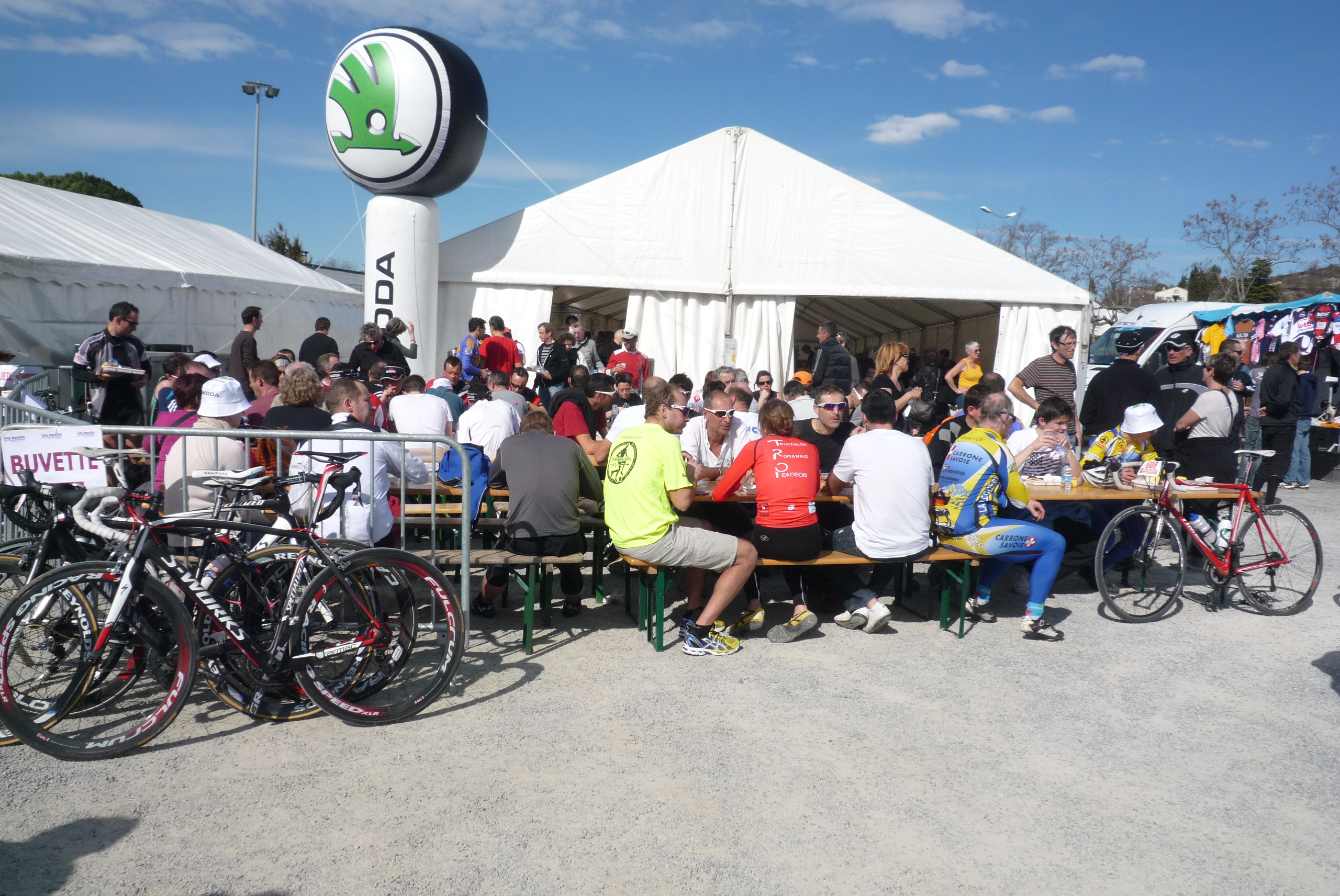 The view outside the food tent. Notice the guy in the shorts. It was well over 20 degrees today. Finally, Le Sud is back to normal.