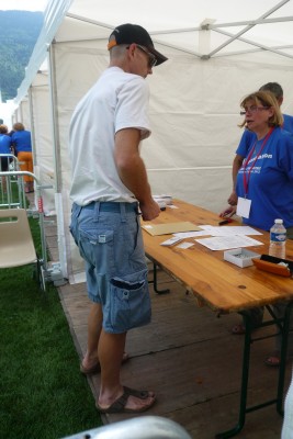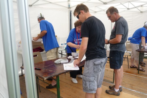 After settling into La Colombiere the 4 of us drove up to Albertville to hand in our medical certificates and confirmation sheets to the friendly volunteers at the ‘village’. Here we are, smiling because we are still two days away from the misery we all know awaits us.