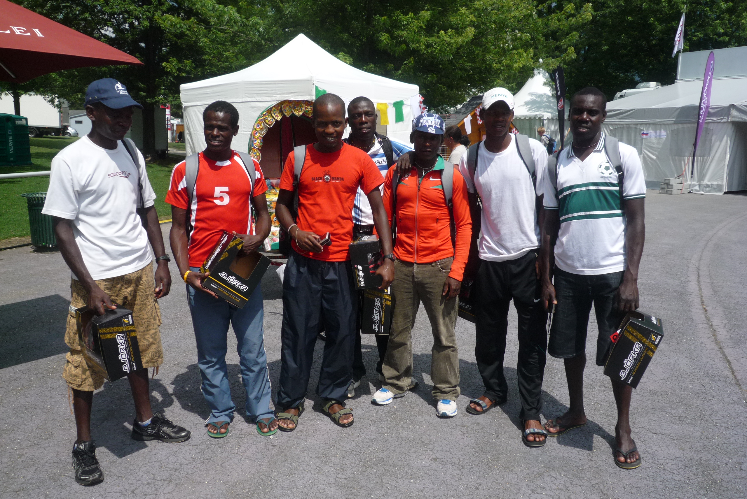 These are the Kenyan Riders, a group of cyclists who are in Europe to ride the two Etapes, a few criteriums and the Haute Route, in order to showcase their strength and abilities and hopefully find a sponsor or two, I imagine. They all apparently come from a region in Kenya that produces a large percentage of the world’s best runners, and they think that whatever advantages the folks from this place have when it comes to running can be transferred to riding a bike very fast up something very steep. Their goal is to produce the first black African to ride in the Tour de France.